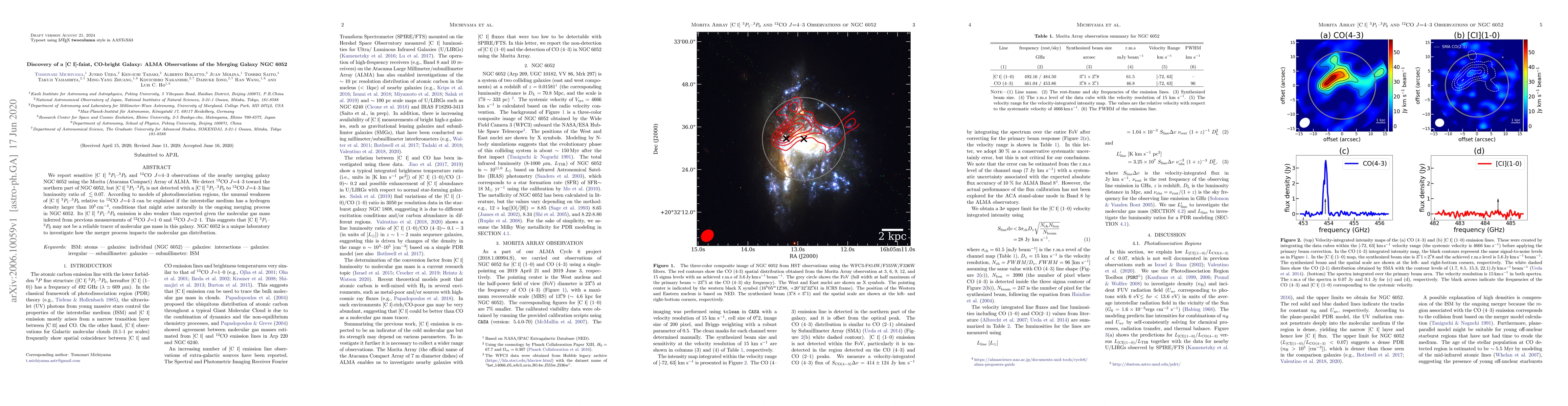 ALMA observations of merging galaxy NGC 6052 reveal a CO-bright, CI-faint region, suggesting high hydrogen density (>10^5 cm-3) due to merging. CI emission may not reliably trace molecular gas mass in merging galaxies, making NGC 6052 a unique case for studying merger impacts on molecular gas distribution.