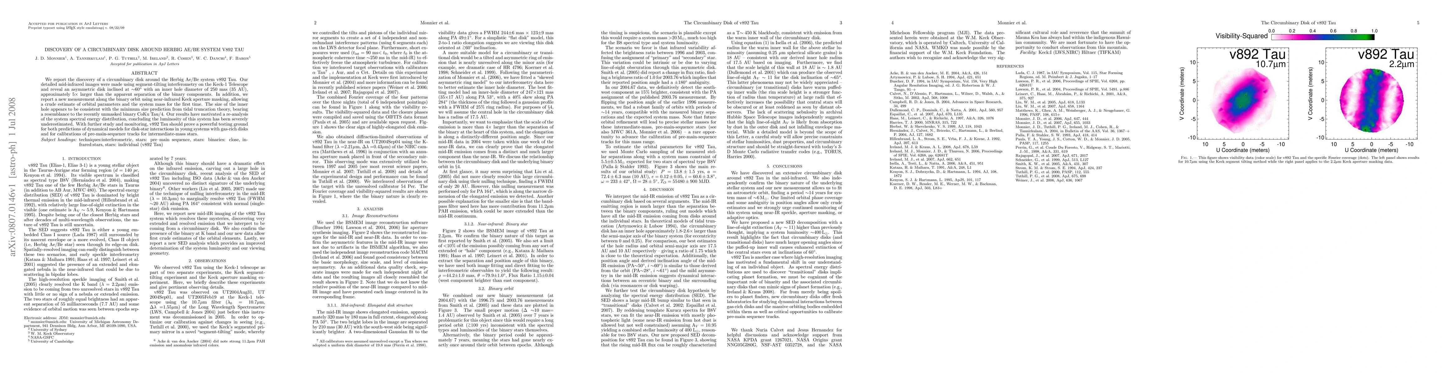 Researchers discovered a circumbinary disk around the Herbig Ae/Be system v892 Tau using mid-infrared images from the Keck-1 Telescope, revealing an asymmetric disk with an inner hole consistent with tidal truncation theory. This finding suggests a re-evaluation of the system's luminosity and potential for testing dynamical models of disk-star interactions.