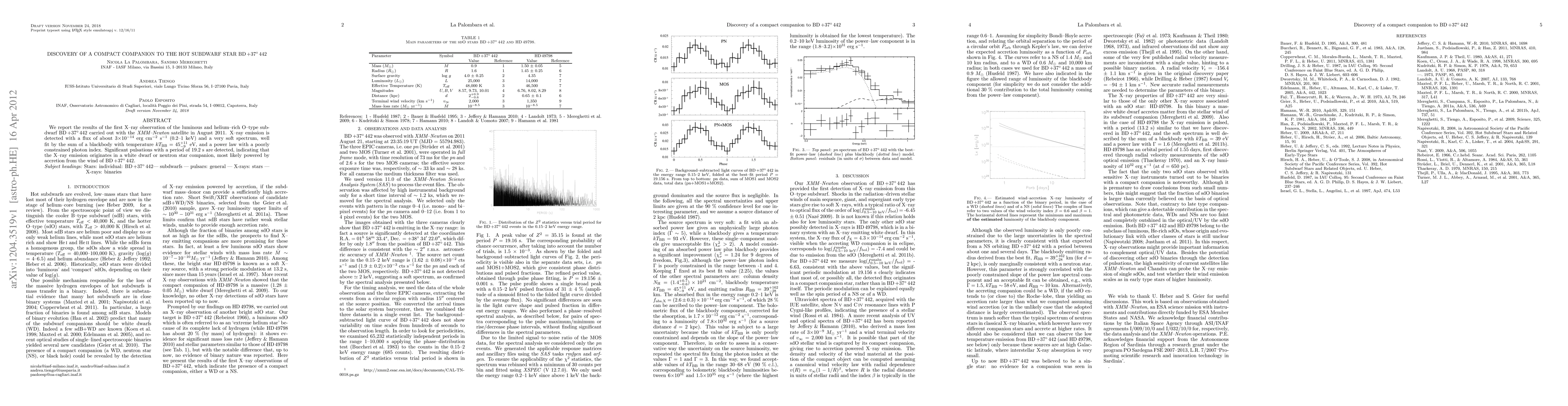 This paper reports the discovery of X-ray emission from the hot subdwarf BD+37 442, detected via XMM-Newton, indicating a compact companion likely a white dwarf or neutron star, powered by accretion from BD+37 442's stellar wind.