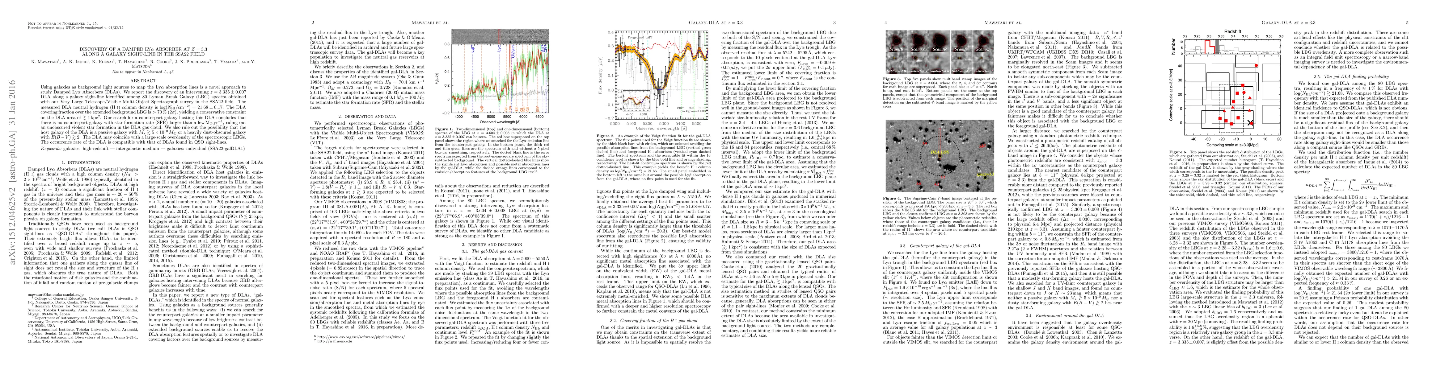 Scientists discovered a Damped Lyman Alpha Absorber at z = 3.3 along a galaxy sight-line in the SSA22 field, finding high neutral hydrogen column density and ruling out violent star formation and certain types of host galaxies.