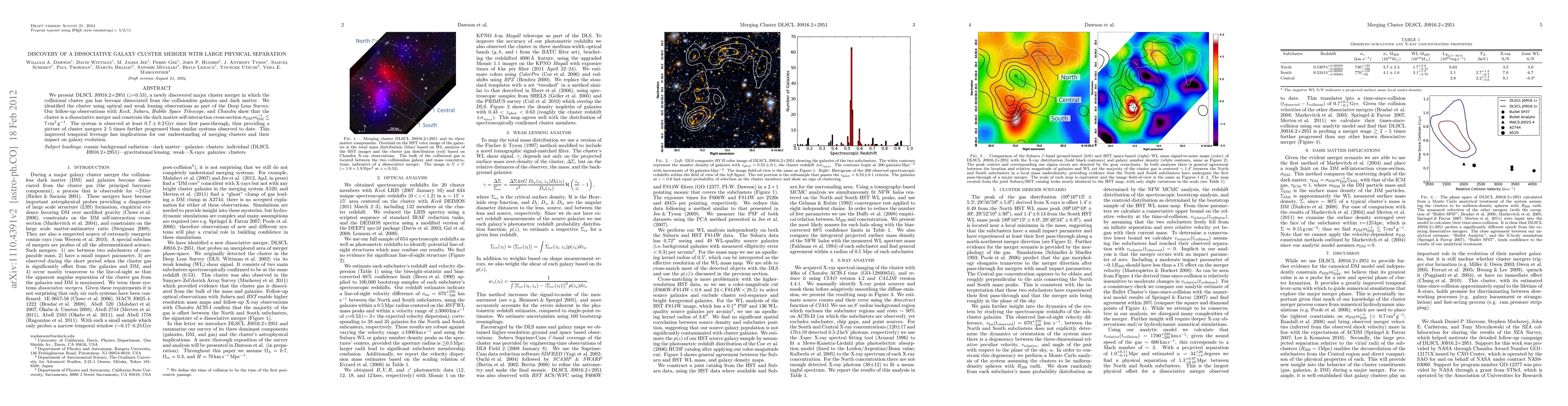 We present DLSCL J0916.2+2951 (z=0.53), a newly discovered major cluster merger in which the collisional cluster gas has become dissociated from the collisionless galaxies and dark matter. We identified the cluster using optical and weak lensing observations as part of the Deep Lens Survey. Our follow-up observations with Keck, Subaru, Hubble Space Telescope, and Chandra show that the cluster is a dissociative merger and constrain the dark matter self-interaction cross-section {\sigma}_{DM}m_{DM}^{-1}\leq7 cm^2g^{-1}. The system is observed at least 0.7\pm0.2 Gyr since first pass-through, thus providing a picture of cluster mergers 2-5 times further progressed than similar systems observed to date. This improved temporal leverage has implications for our understanding of merging clusters and their impact on galaxy evolution.