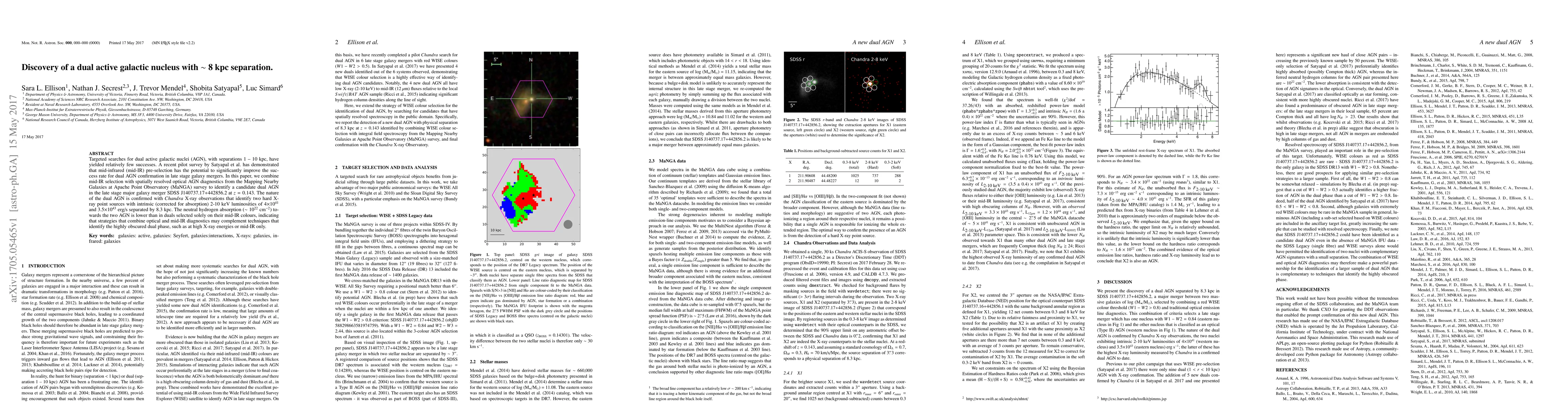 Scientists have discovered a dual active galactic nucleus with an 8-kiloparsec separation, using a combination of mid-infrared and optical diagnostics, and confirmed it with Chandra X-ray observations.