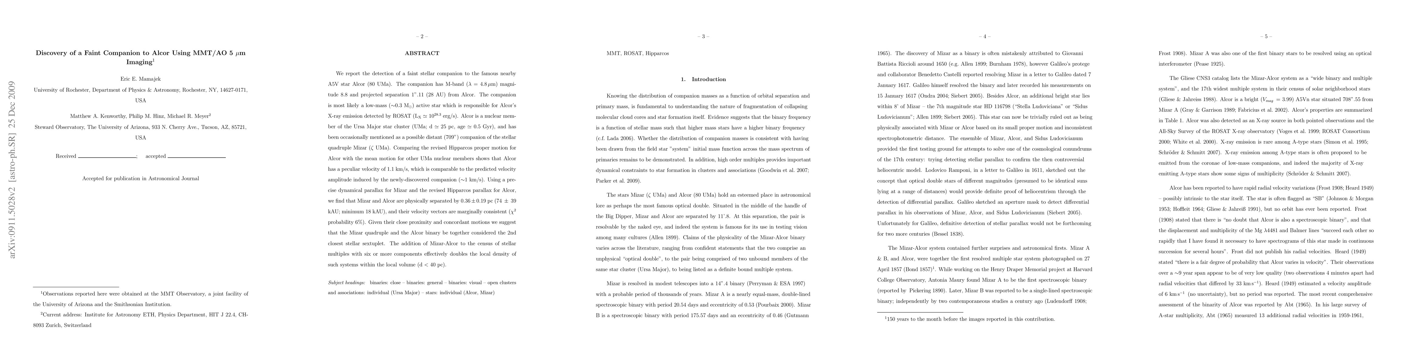 Researchers discovered a faint, low-mass companion star near Alcor, a bright star in Ursa Major, using MMT/AO 5 $mu$m imaging. The companion, likely active and responsible for Alcor's X-ray emission, is separated by 28 astronomical units. The findings suggest Alcor and its companion, along with the Mizar quadruple system, form the second closest stellar sextuplet, enhancing our understanding of stellar multiples within 40 pc.