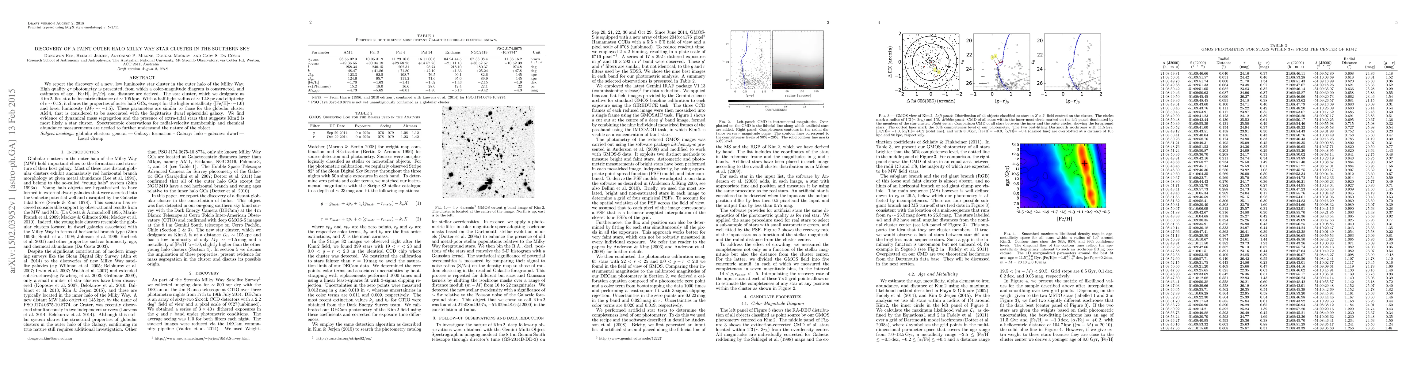 Researchers discovered a new, faint star cluster, Kim 2, in the Milky Way's outer halo, characterized by high metallicity and low luminosity. Spectroscopic observations are recommended to further determine its nature and association with the Sagittarius dwarf galaxy.