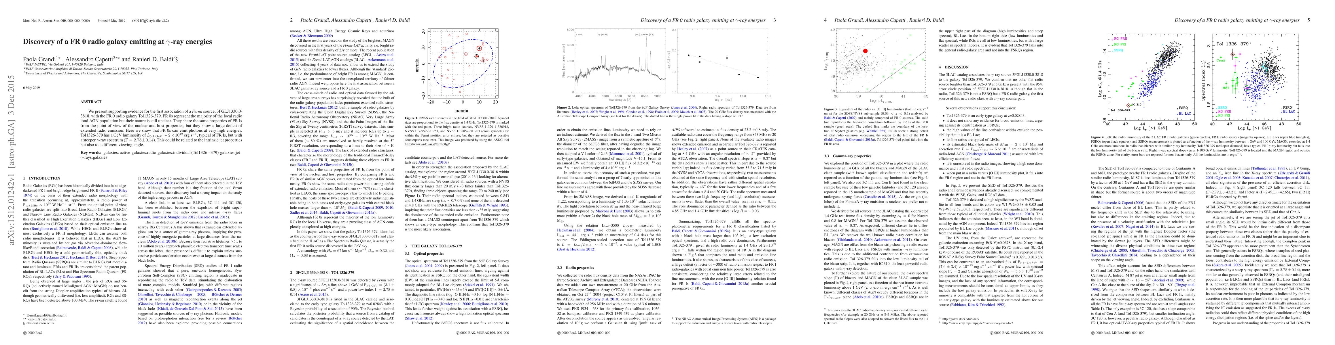 This paper reports the first association of a Fermi source with an FR0 radio galaxy, Tol1326-379, revealing its emission at $\gamma$-ray energies. The galaxy exhibits a GeV luminosity and $\gamma$-ray spectrum typical of FRIs, suggesting unique jet properties or viewing angle differences.