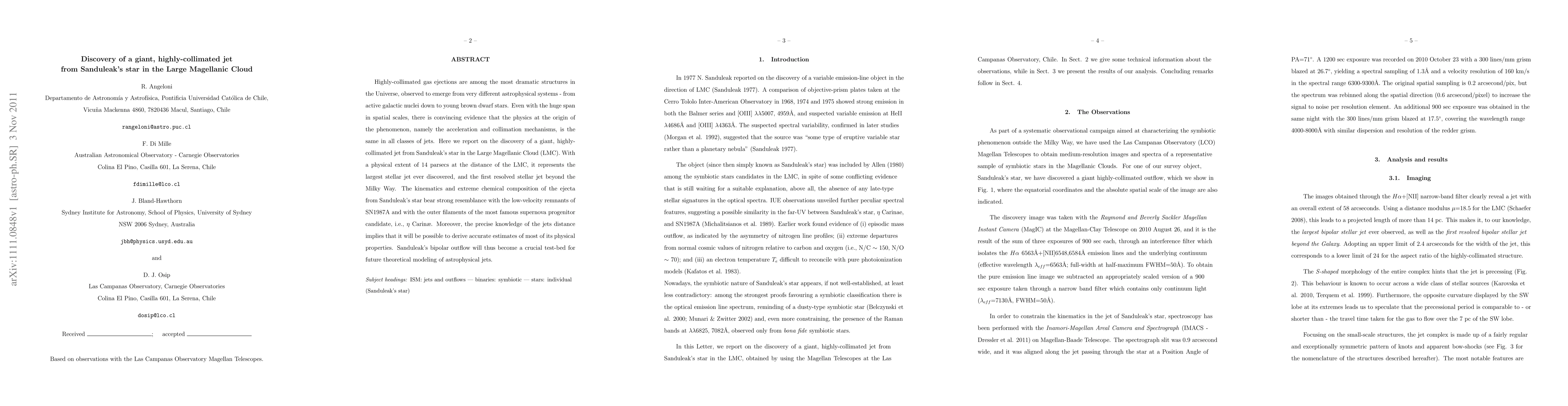 Researchers discovered the largest stellar jet ever found, 14 parsecs long, originating from Sanduleak's star in the Large Magellanic Cloud. This jet shares similarities with supernova remnants SN1987A and eta Carinae, providing a test-bed for astrophysical jet modeling.