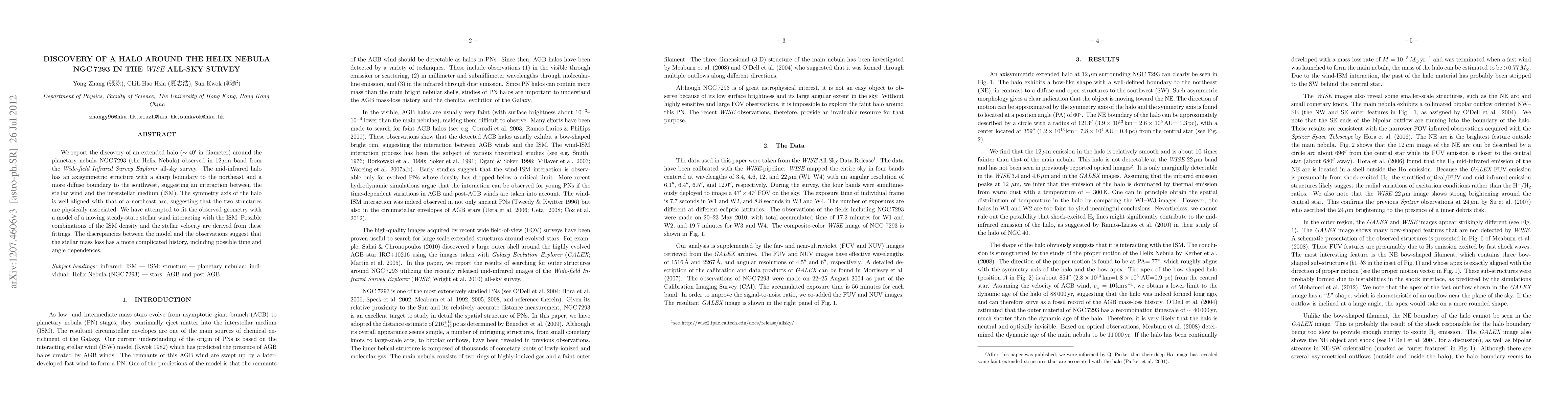 We report the discovery of an extended halo (40' in diameter) around the planetary nebula NGC7293 (the Helix Nebula) observed in 12micron band from the Wide-field Infrared Survey Explorer all-sky survey. The mid-infrared halo has an axisymmetric structure with a sharp boundary to the northeast and a more diffuse boundary to the southwest, suggesting an interaction between the stellar wind and the interstellar medium (ISM). The symmetry axis of the halo is well aligned with that of a northeast arc, suggesting that the two structures are physically associated. We have attempted to fit the observed geometry with a model of a moving steady-state stellar wind interacting with the ISM. Possible combinations of the ISM density and the stellar velocity are derived from these fittings. The discrepancies between the model and the observations suggest that the stellar mass loss has a more complicated history, including possible time and angle dependences.