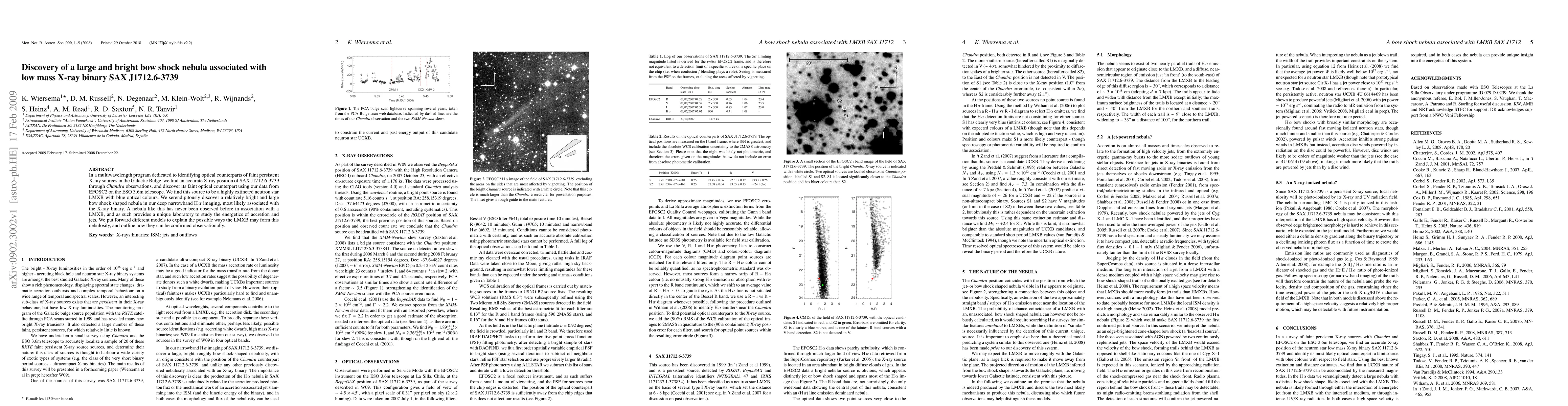 In a multiwavelength program dedicated to identifying optical counterparts of faint persistent X-ray sources in the Galactic Bulge, we find an accurate X-ray position of SAX J1712.6-3739 through Chandra observations, and discover its faint optical counterpart using our data from EFOSC2 on the ESO 3.6m telescope. We find this source to be a highly extincted neutron star LMXB with blue optical colours. We serendipitously discover a relatively bright and large bow shock shaped nebula in our deep narrowband H alpha imaging, most likely associated with the X-ray binary. A nebula like this has never been observed before in association with a LMXB, and as such provides a unique laboratory to study the energetics of accretion and jets. We put forward different models to explain the possible ways the LMXB may form this nebulosity, and outline how they can be confirmed observationally.