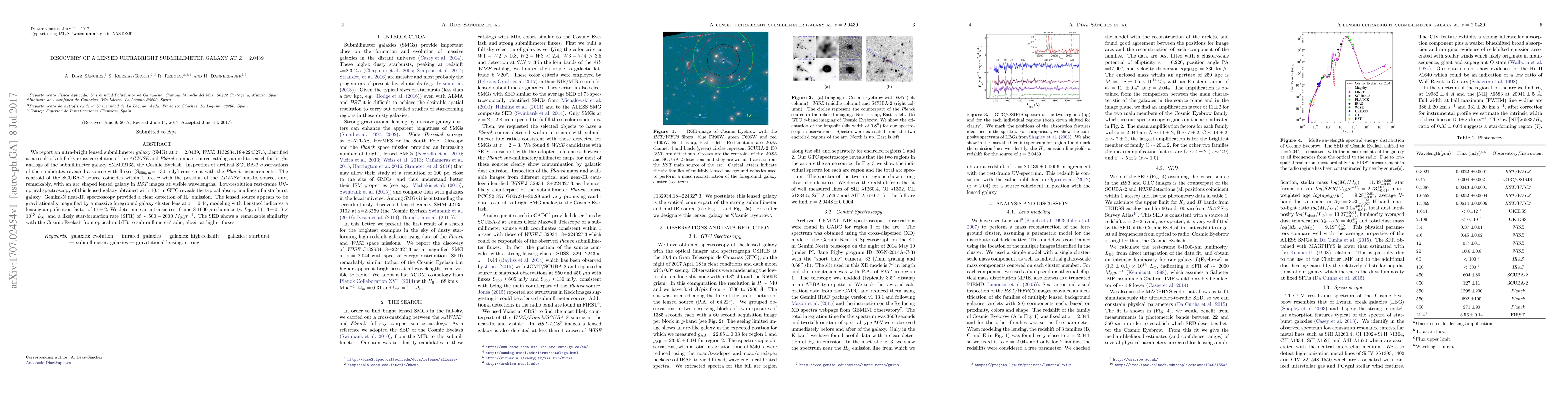 We report an ultra-bright lensed submillimeter galaxy (SMG) at $z=2.0439$, {\it WISE} J132934.18+224327.3, identified as a result of a full-sky cross-correlation of the {\it AllWISE} and {\it Planck} compact source catalogs aimed to search for bright analogs of the submillimeter galaxy SMMJ2135, the Cosmic Eyelash. Inspection of archival SCUBA-2 observations of the candidates revealed a source with fluxes (S$_{850 \mu m}$= 130 mJy) consistent with the {\it Planck} measurements. The centroid of the SCUBA-2 source coincides within 1 arcsec with the position of the {\it AllWISE} mid-IR source, and, remarkably, with an arc shaped lensed galaxy in {\it HST} images at visible wavelengths. Low-resolution rest-frame UV-optical spectroscopy of this lensed galaxy obtained with 10.4 m GTC reveals the typical absorption lines of a starburst galaxy. Gemini-N near-IR spectroscopy provided a clear detection of H$_{\alpha}$ emission. The lensed source appears to be gravitationally magnified by a massive foreground galaxy cluster lens at $z = 0.44$, modeling with Lenstool indicates a lensing amplification factor of $11\pm 2$. We determine an intrinsic rest-frame 8-1000-$\mu$m luminosity, $L_{\rm IR}$, of $(1.3 \pm 0.1) \times 10^{13}$ $L_\sun$, and a likely star-formation rate (SFR) of $\sim 500-2000$ $M_\sun yr^{-1}$. The SED shows a remarkable similarity with the Cosmic Eyelash from optical-mid/IR to sub-millimeter/radio, albeit at higher fluxes.