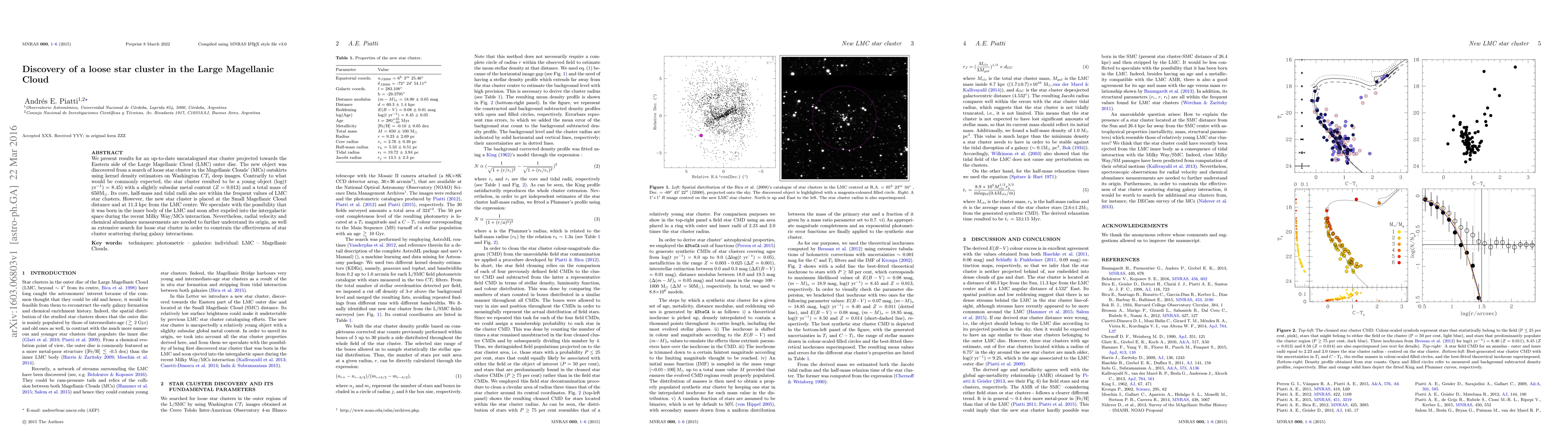 This paper reports the discovery of a young, uncatalogued star cluster in the outskirts of the Large Magellanic Cloud (LMC) with a total mass of 650Mo, located at a distance suggesting it may belong to the Small Magellanic Cloud. Further study is needed to determine its origin, possibly involving its ejection from the LMC during recent galaxy interactions.