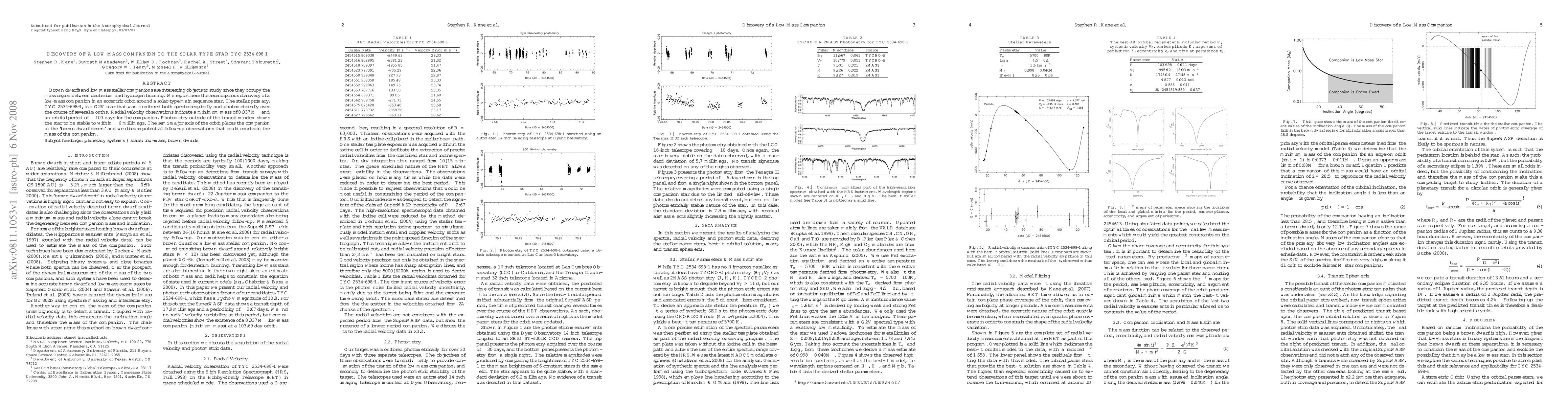 Brown dwarfs and low-mass stellar companions are interesting objects to study since they occupy the mass region between deuterium and hydrogen burning. We report here the serendipitous discovery of a low-mass companion in an eccentric orbit around a solar-type main sequence star. The stellar primary, TYC 2534-698-1, is a G2V star that was monitored both spectroscopically and photometrically over the course of several months. Radial velocity observations indicate a minimum mass of 0.037 M_solar and an orbital period of ~103 days for the companion. Photometry outside of the transit window shows the star to be stable to within ~6 millimags. The semi-major axis of the orbit places the companion in the 'brown dwarf desert' and we discuss potential follow-up observations that could constrain the mass of the companion.