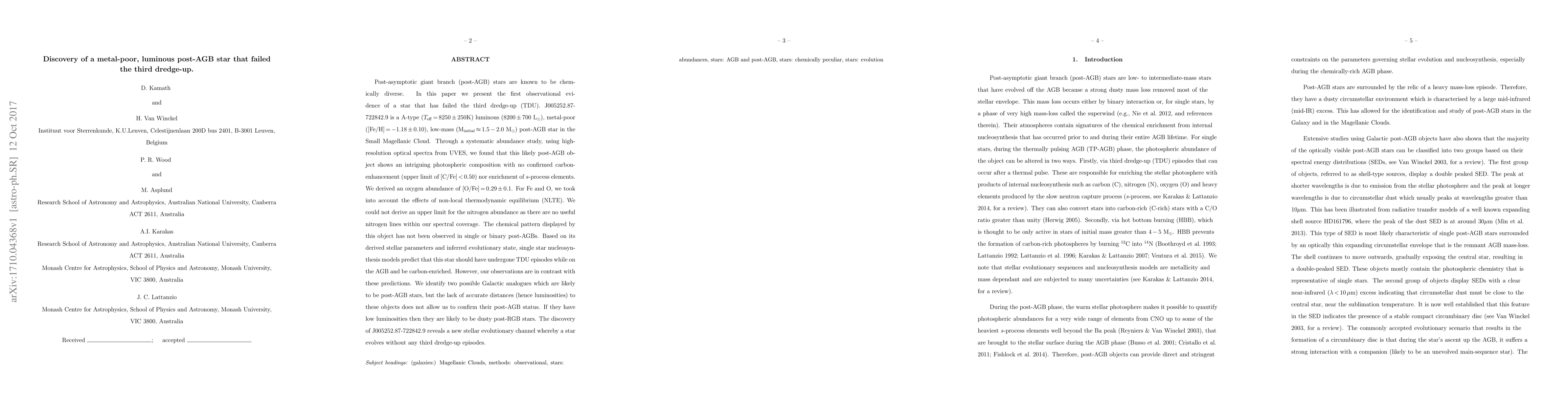 This paper reports the discovery of a metal-poor, luminous post-AGB star in the Small Magellanic Cloud that failed to undergo the third dredge-up, showing no carbon-enhancement or enrichment of s-process elements, contrary to predictions based on its evolutionary state. This finding suggests an alternative stellar evolutionary pathway.