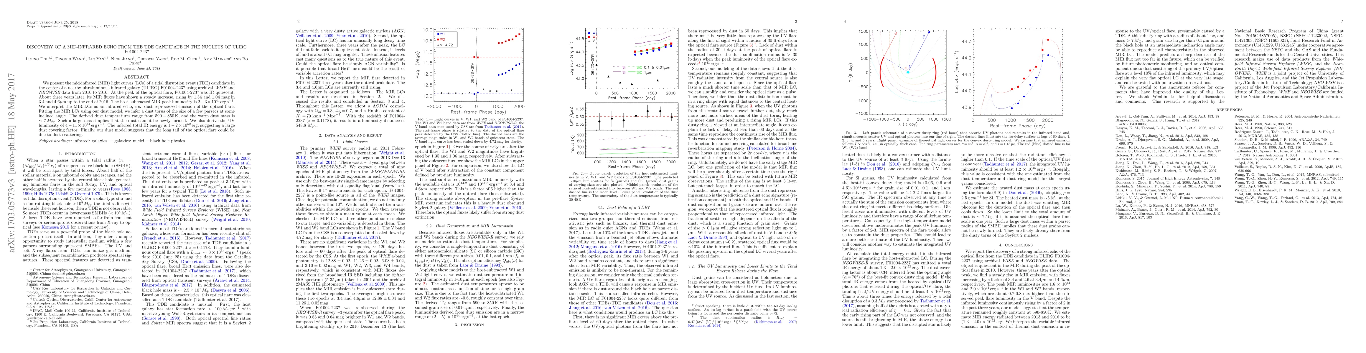 Astronomers discovered a mid-infrared echo from a tidal disruption event in the center of an ultraluminous infrared galaxy, indicating dust reprocessed emission from the original flare.