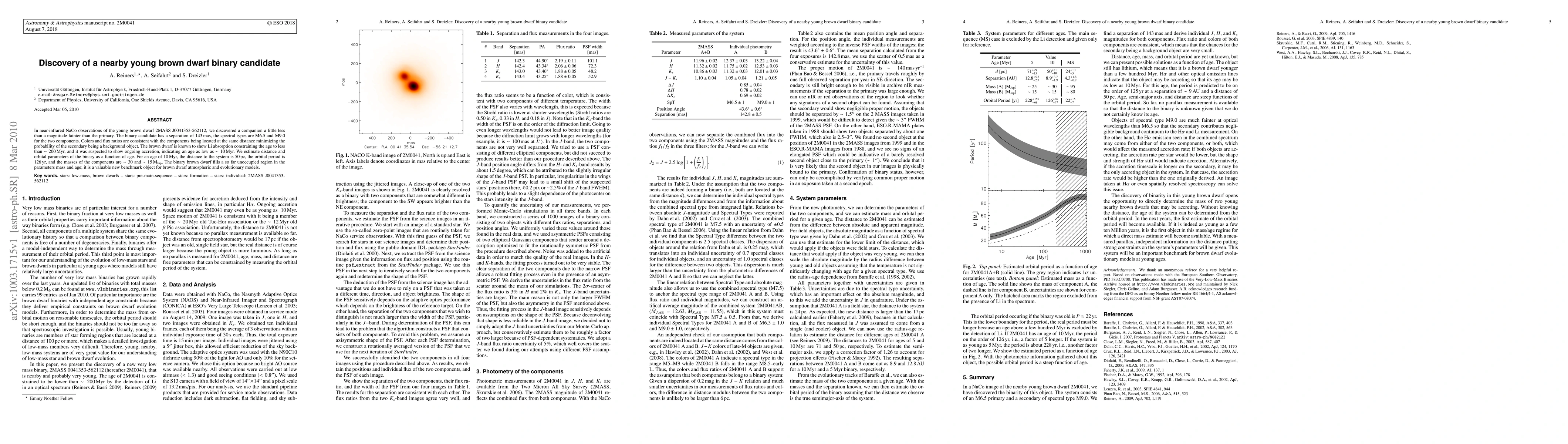 This paper reports the discovery of a nearby young brown dwarf binary system, with components of spectral types M6.5 and M9.0 separated by 143 mas. The system's age is estimated to be less than 200 Myr, potentially as young as 10 Myr, making it a valuable benchmark for brown dwarf models.