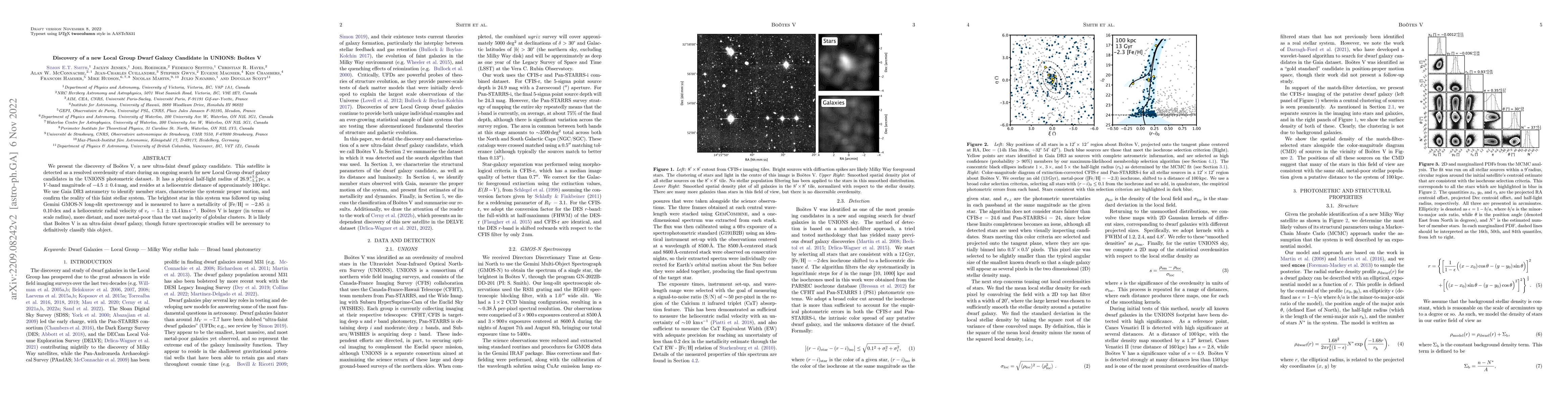 Researchers discovered Bo\"otes V, a new ultra-faint dwarf galaxy candidate in the UNIONS photometric dataset, characterized by a physical half-light radius of 26.9 pc and a $V$-band magnitude of $-$4.5 mag. Gaia DR3 astrometry and Gemini GMOS-N spectroscopy confirm its existence and suggest it is more metal-poor than most globular clusters.