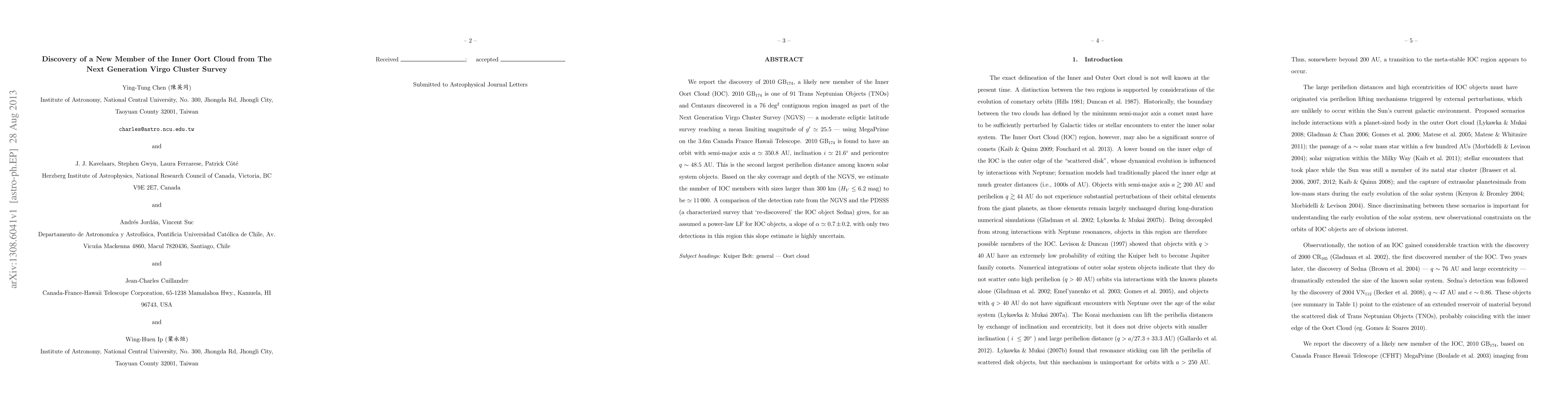 A new object, 2010 GB$_{174}$, is discovered in the Inner Oort Cloud, with an orbit indicating a perihelion distance of over 48 AU, making it one of the most distant known objects in our solar system.