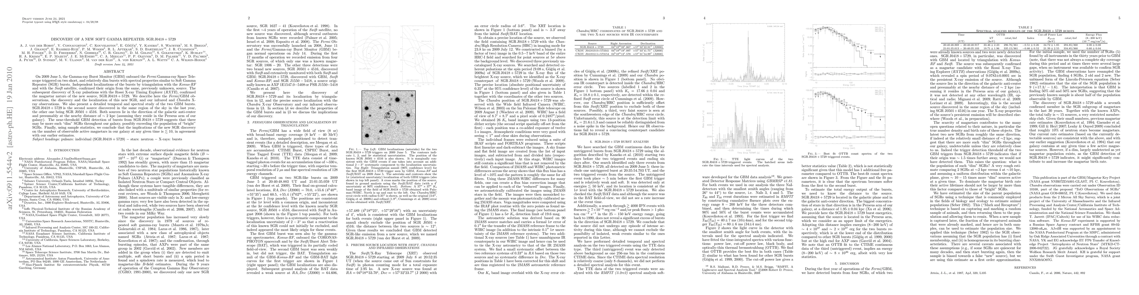 On 2009 June 5, the Gamma-ray Burst Monitor (GBM) onboard the Fermi Gamma-ray Space Telescope triggered on two short, and relatively dim bursts with spectral properties similar to Soft Gamma Repeater (SGR) bursts. Independent localizations of the bursts by triangulation with the Konus-RF and with the Swift satellite, confirmed their origin from the same, previously unknown, source. The subsequent discovery of X-ray pulsations with the Rossi X-ray Timing Explorer (RXTE), confirmed the magnetar nature of the new source, SGR J0418+5729. We describe here the Fermi/GBM observations, the discovery and the localization of this new SGR, and our infrared and Chandra X-ray observations. We also present a detailed temporal and spectral study of the two GBM bursts. SGR J0418+5729 is the second source discovered in the same region of the sky in the last year, the other one being SGR J0501+4516. Both sources lie in the direction of the galactic anti-center and presumably at the nearby distance of ~2 kpc (assuming they reside in the Perseus arm of our galaxy). The near-threshold GBM detection of bursts from SGR J0418+5729 suggests that there may be more such dim SGRs throughout our galaxy, possibly exceeding the population of bright SGRs. Finally, using sample statistics, we conclude that the implications of the new SGR discovery on the number of observable active magnetars in our galaxy at any given time is <10, in agreement with our earlier estimates.