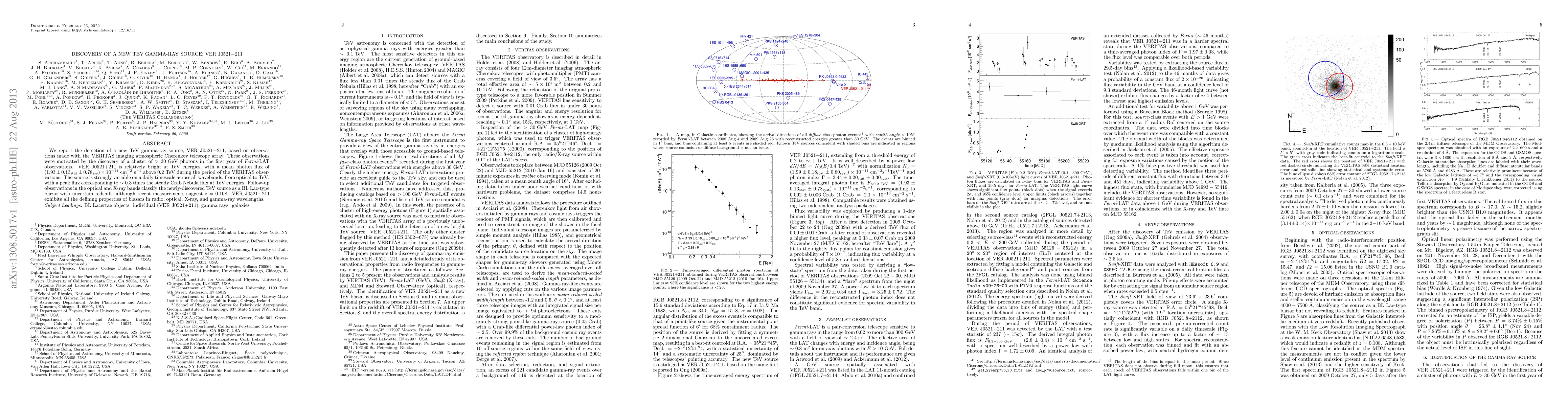 The VERITAS telescope array detected a new TeV gamma-ray source, VER J0521+211, identified as a BL Lac-type blazar, which is highly variable across multiple wavelengths and exhibits characteristics typical of blazars. The source has a mean photon flux of 1.93 +/- 0.13_stat +/- 0.78_sys 10^-11 cm-2 s-1 above 0.2 TeV.