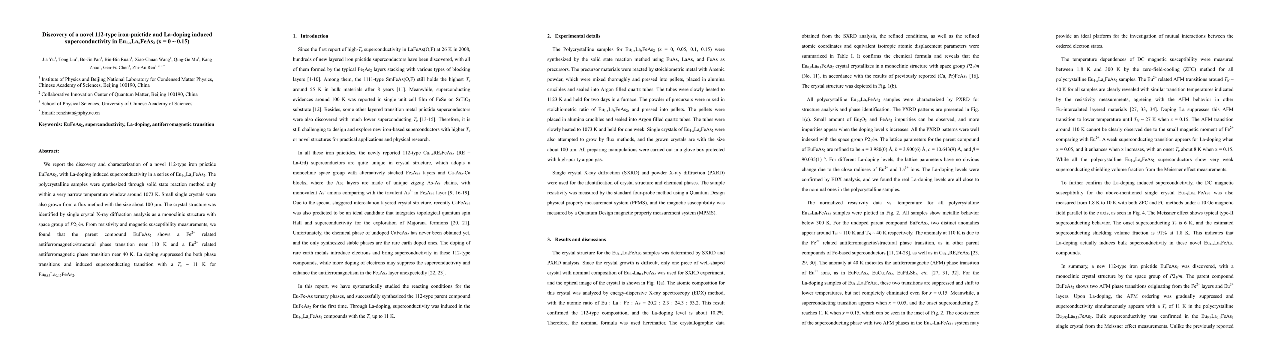 Researchers discovered a new iron-pnictide compound EuFeAs2 with induced superconductivity through La-doping, reaching a critical temperature of around 11 K.