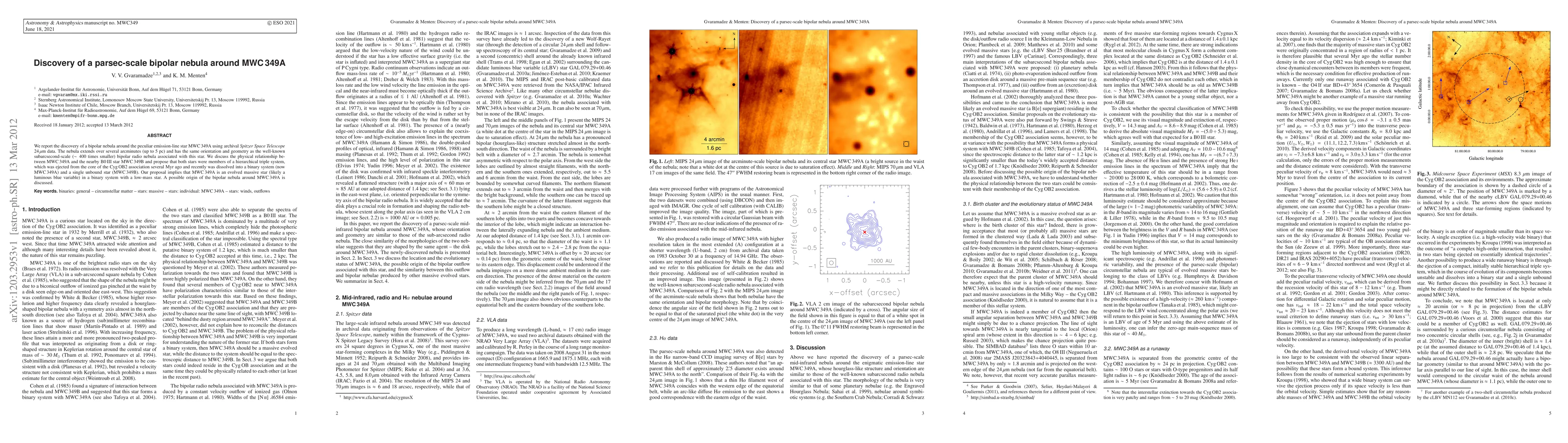 The paper reports the discovery of a large bipolar nebula around MWC 349A, using Spitzer data, and proposes a hierarchical triple system origin for MWC 349A and its companion, MWC 349B, suggesting they were ejected from Cyg OB2 and recently dissolved into a binary system.