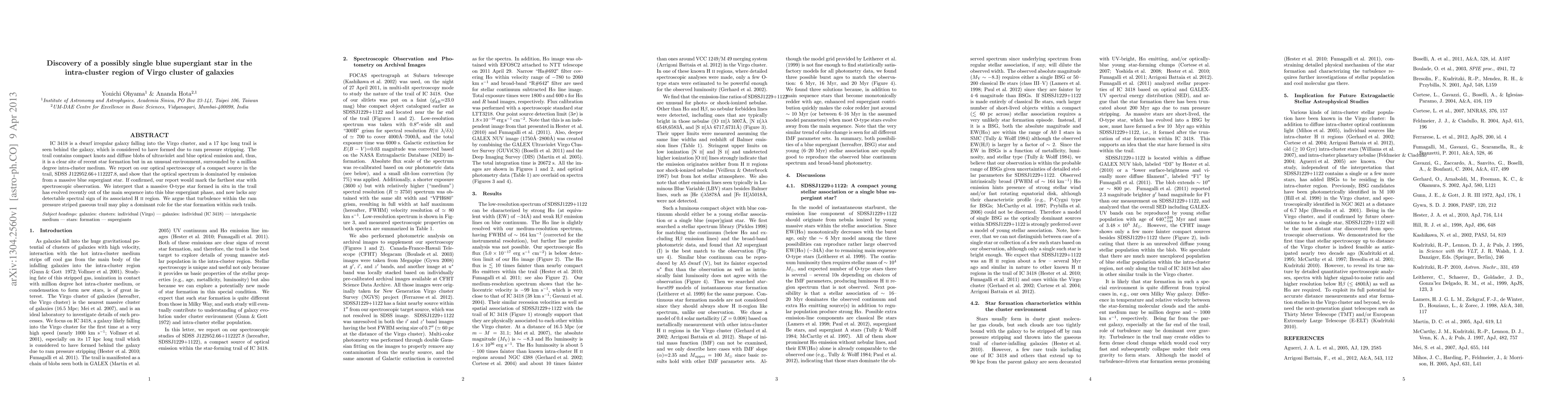 This paper reports the discovery of a possibly single blue supergiant star in the ram pressure stripped trail of IC 3418, a dwarf irregular galaxy in the Virgo cluster. The star, identified through optical spectroscopy, suggests in situ star formation within the unusual intra-cluster medium environment.