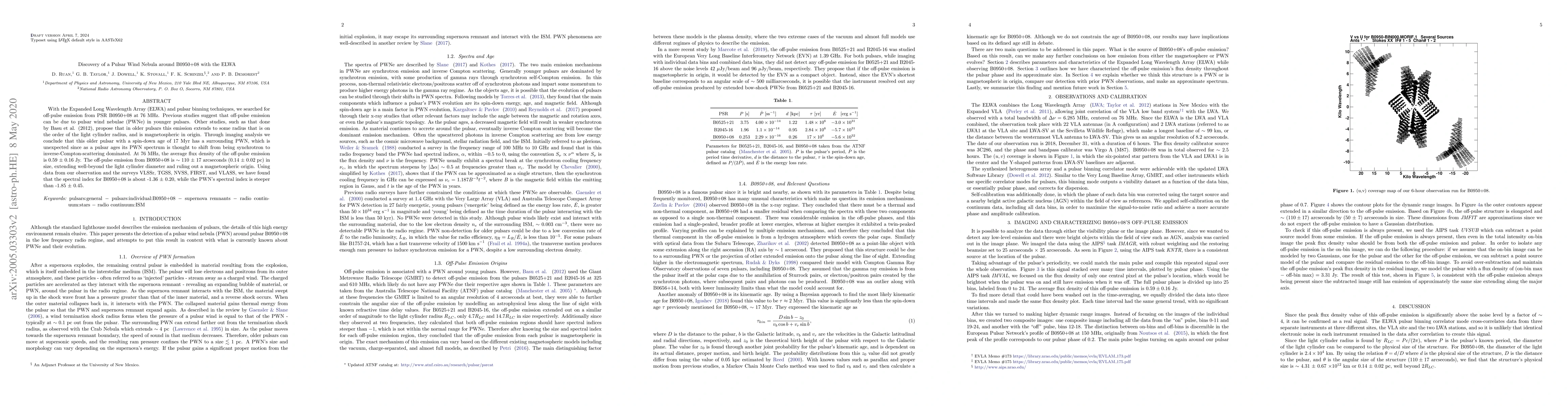 The ELWA discovered a pulsar wind nebula (PWN) around the older pulsar PSR B0950+08 at 76 MHz, contrary to expectations of PWN spectrum shift. The PWN's off-pulse emission is larger than the light cylinder, indicating a synchrotron origin rather than a magnetospheric one.