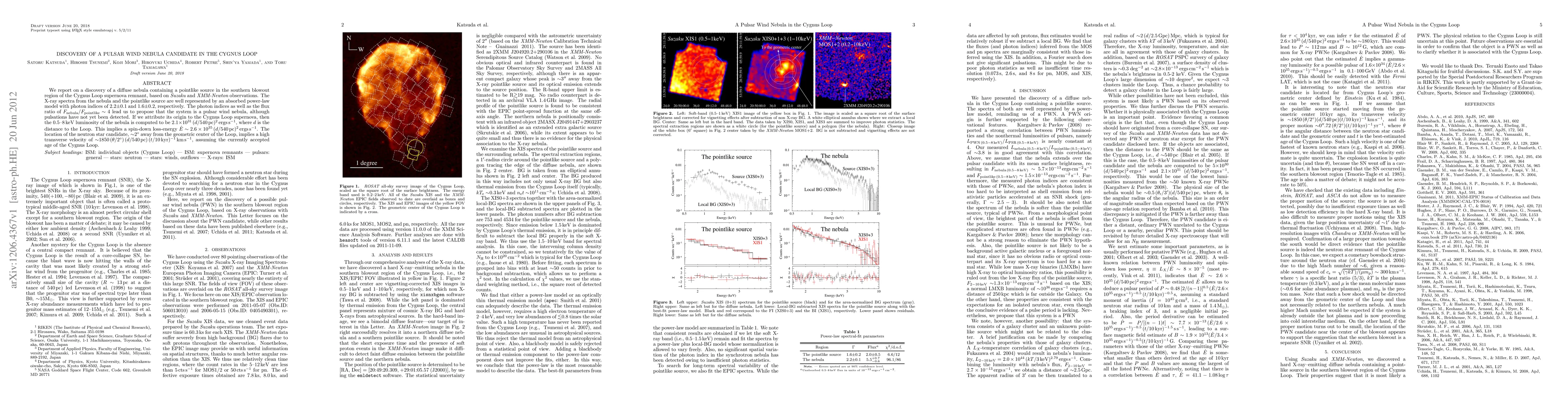 This paper reports the discovery of a diffuse nebula in the Cygnus Loop supernova remnant, identified as a potential pulsar wind nebula based on Suzaku and XMM-Newton observations. The nebula's X-ray spectra suggest a pulsar wind nebula origin, though pulsations have not yet been detected.