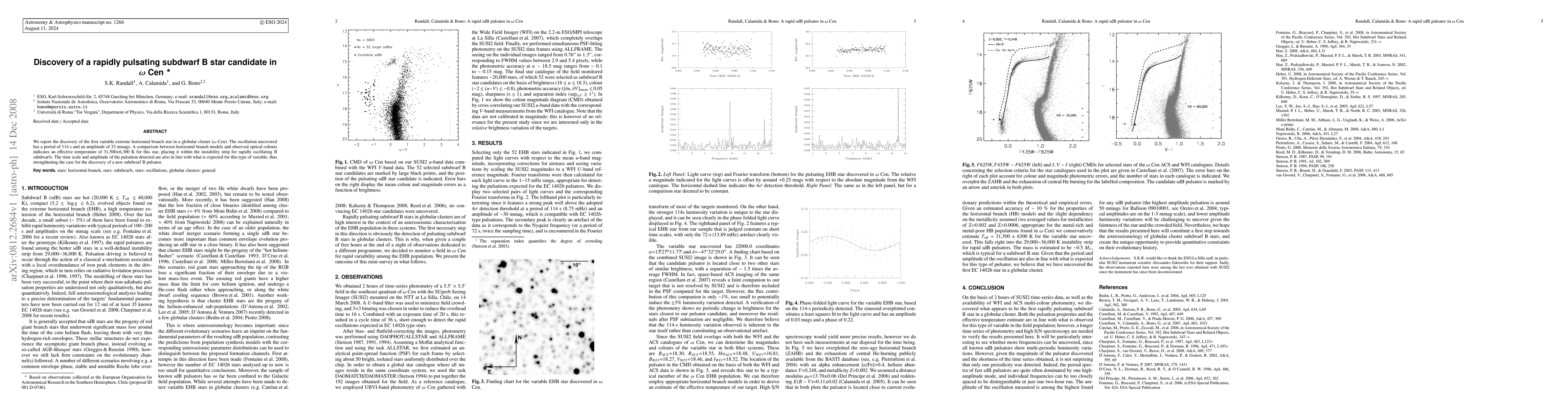 We report the discovery of the first variable extreme horizontal branch star in a globular cluster (omega Cen). The oscillation uncovered has a period of 114 s and an amplitude of 32 mmags. A comparison between horizontal branch models and observed optical colours indicates an effective temperature of 31,500+-6,300 K for this star, placing it within the instability strip for rapidly oscillating B subdwarfs. The time scale and amplitude of the pulsation detected are also in line with what is expected for this type of variable, thus strengthening the case for the discovery of a new subdwarf B pulsator.