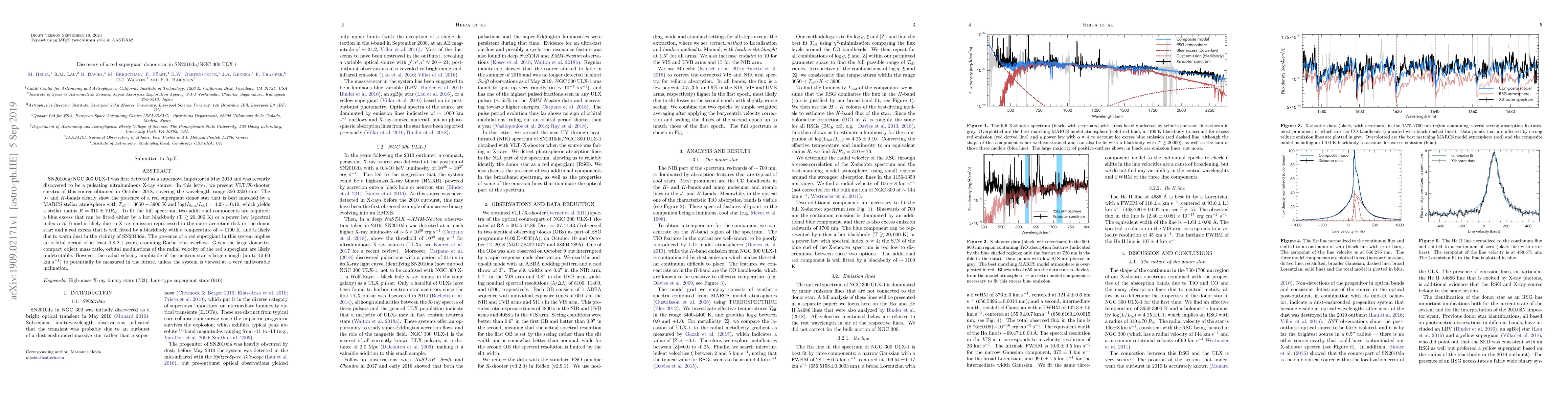 A red supergiant donor star is discovered in the ultraluminous X-ray source SN2010da/NGC 300 ULX-1, providing insight into the system's orbital period and potential for measuring neutron star radial velocity.