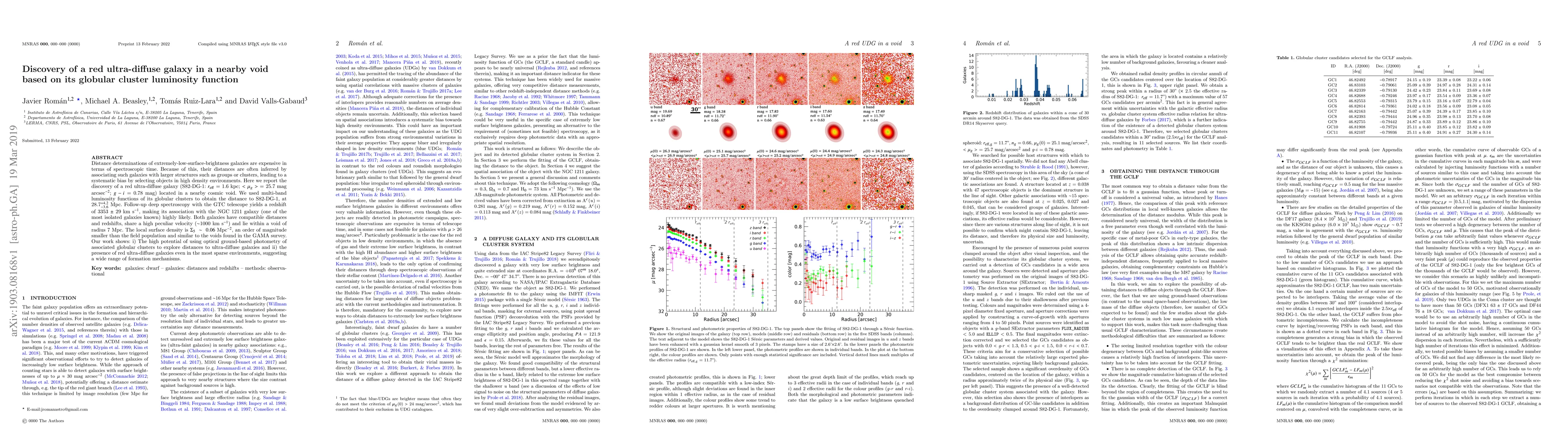 This paper reports the discovery of a red ultra-diffuse galaxy (S82-DG-1) in a nearby cosmic void using its globular cluster luminosity function for distance determination. The study highlights the potential of this method and reveals the presence of such galaxies in sparse environments, suggesting diverse formation mechanisms.