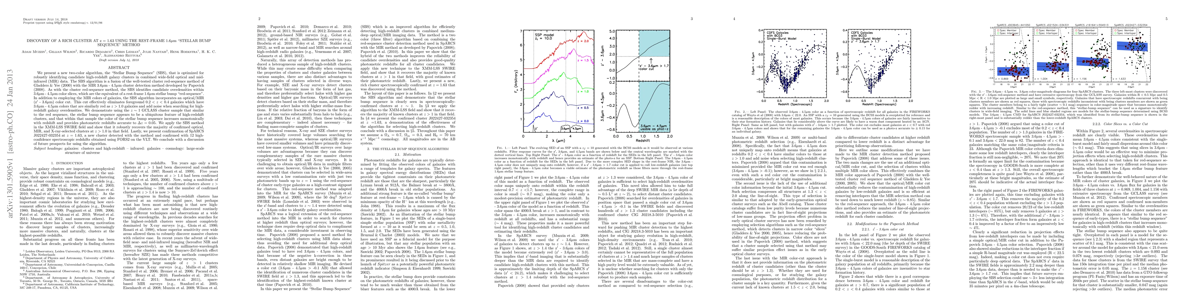 The paper introduces the "Stellar Bump Sequence" (SBS) algorithm, combining optical and mid-infrared data to identify high-redshift galaxy clusters. The SBS method successfully detects a new cluster, SpARCS J022427-032354, at z = 1.63, confirmed by spectroscopic redshifts, and shows promising results for future cluster detection.