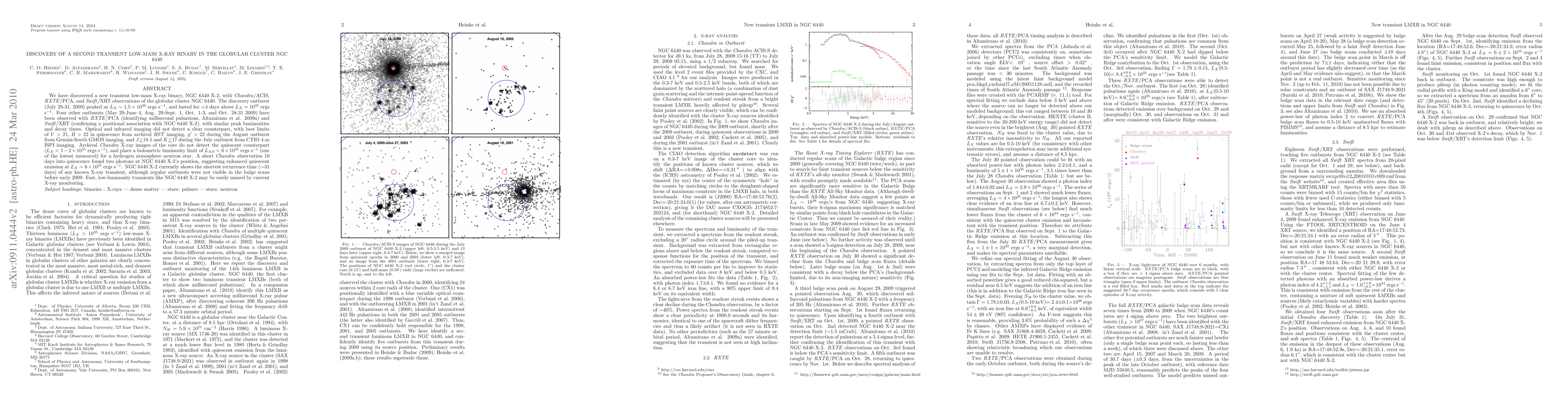 Researchers identified a new transient low-mass X-ray binary, NGC 6440 X-2, in the globular cluster NGC 6440, with multiple outbursts observed in 2009. The source exhibits extremely short recurrence times and low luminosity, challenging current X-ray monitoring methods.