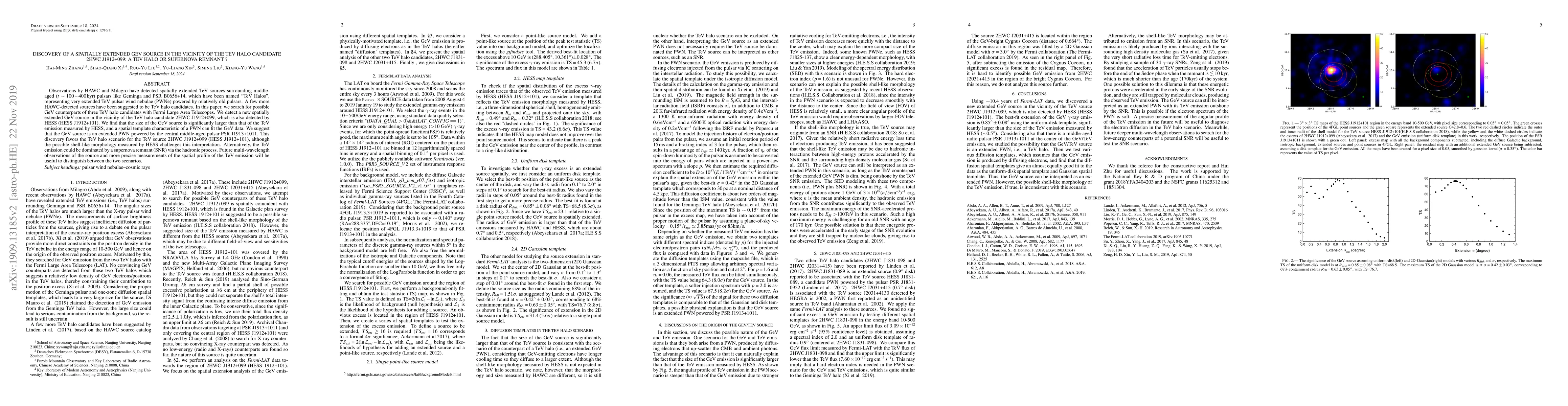Researchers detected a spatially extended GeV source near the TeV halo candidate 2HWC J1912+099, suggesting it may be an extended pulsar wind nebula. The findings support the TeV halo interpretation but leave open the possibility of a supernova remnant origin.