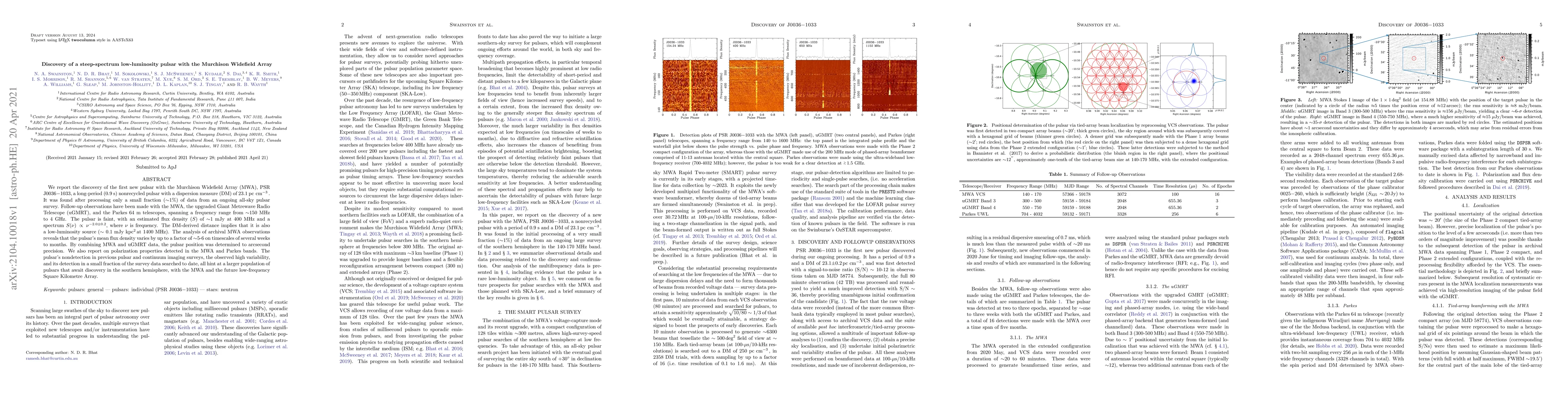 The Murchison Widefield Array discovered a faint, low-luminosity pulsar, PSR J0036$-$1033, with a steep spectrum and high variability. Follow-up observations suggest a larger population of undiscovered pulsars in the southern sky.