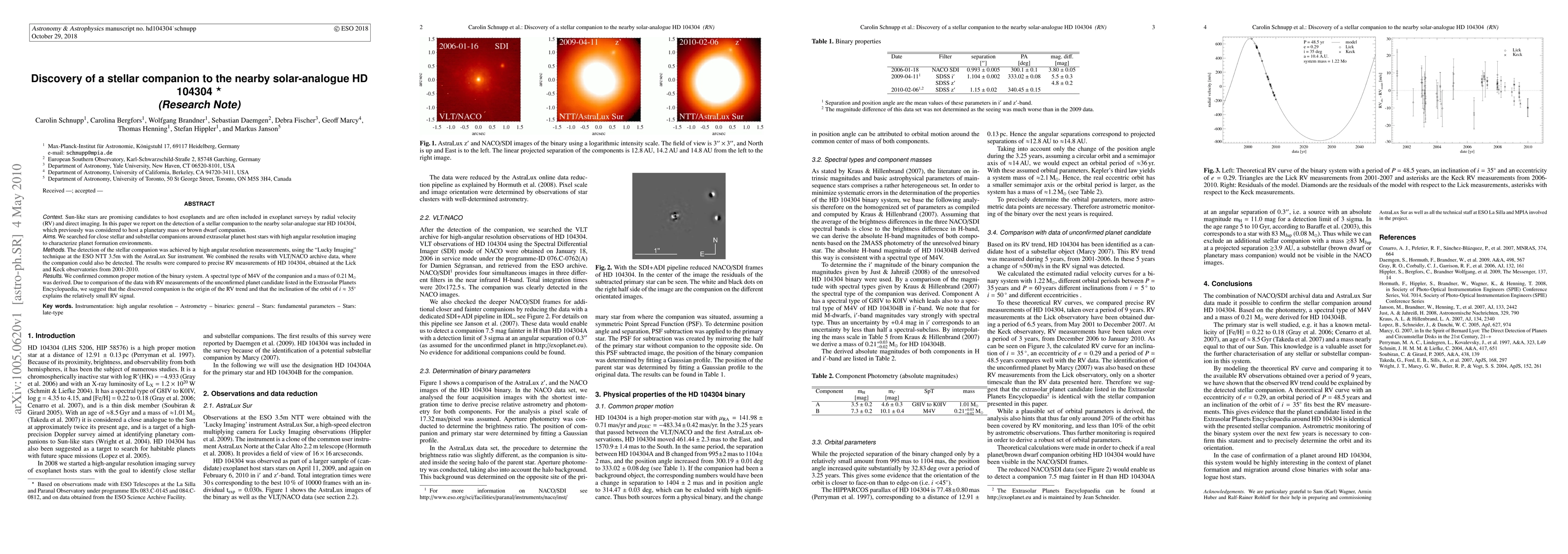 Astronomers discovered a new stellar companion to the nearby star HD 104304, confirming it as a binary system with a mass of 0.21 times that of our sun.