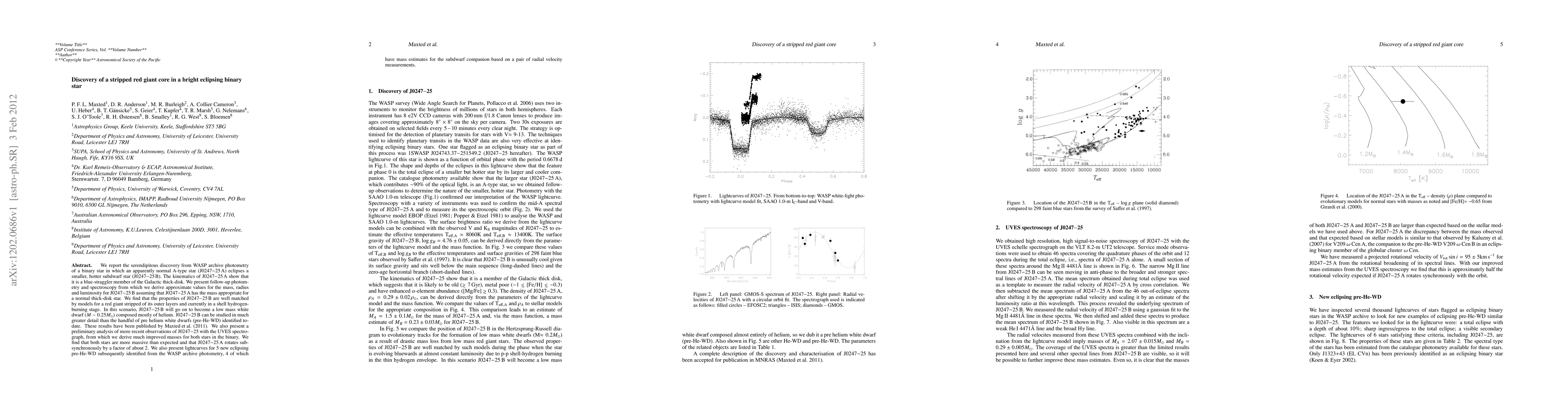 We report the serendipitous discovery from WASP archive photometry of a binary star in which an apparently normal A-type star (J0247-25A) eclipses a smaller, hotter subdwarf star (J0247-25B). The kinematics of J0247-25A show that it is a blue-straggler member of the Galactic thick-disk. We present follow-up photometry and spectroscopy from which we derive approximate values for the mass, radius and luminosity for J0247-25B assuming that J0247-25A has the mass appropriate for a normal thick-disk star. We find that the properties of J0247-25B are well matched by models for a red giant stripped of its outer layers and currently in a shell hydrogen-burning stage. In this scenario, J0247-25B will go on to become a low mass white dwarf (M~0.25 solar masses) composed mostly of helium. J0247-25B can be studied in much greater detail than the handful of pre helium white dwarfs (pre-He-WD) identified to-date. These results have been published by Maxted et al., 2011. We also present a preliminary analysis of more recent observations of J0247-25 with the UVES spectrograph, from which we derive much improved masses for both stars in the binary. We find that both stars are more massive than expected and that J0247-25A rotates sub-synchronously by a factor of about 2. We also present lightcurves for 5 new eclipsing pre-He-WD subsequently identified from the WASP archive photometry, 4 of which have mass estimates for the subdwarf companion based on a pair of radial velocity measurements.
