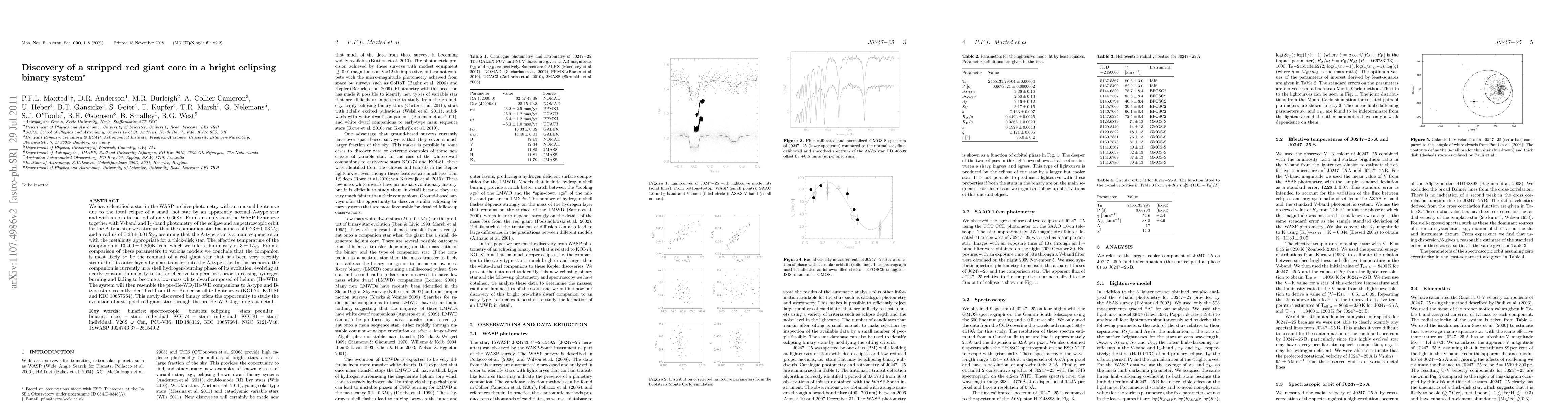 Astronomers have discovered a stripped red giant core in a binary star system, providing insight into its recent evolution through the pre-He-WD stage.