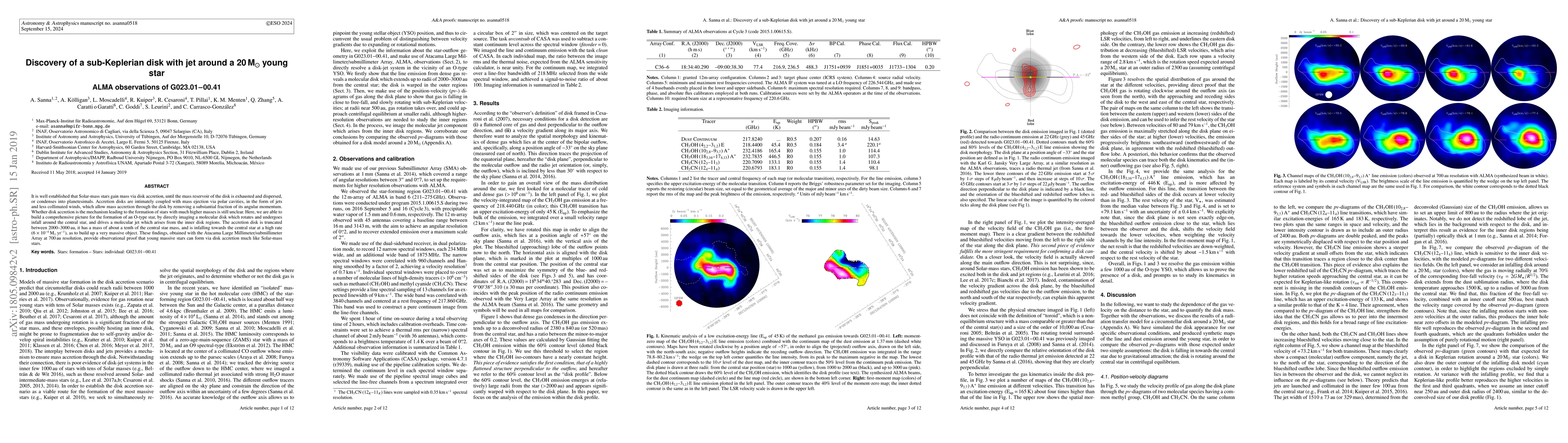 It is well established that Solar-mass stars gain mass via disk accretion, until the mass reservoir of the disk is exhausted and dispersed, or condenses into planetesimals. Accretion disks are intimately coupled with mass ejection via polar cavities, in the form of jets and less collimated winds, which allow mass accretion through the disk by removing a substantial fraction of its angular momentum. Whether disk accretion is the mechanism leading to the formation of stars with much higher masses is still unclear. Here, we are able to build a comprehensive picture for the formation of an O-type star, by directly imaging a molecular disk which rotates and undergoes infall around the central star, and drives a molecular jet which arises from the inner disk regions. The accretion disk is truncated between 2000-3000au, it has a mass of about a tenth of the central star mass, and is infalling towards the central star at a high rate (6x10^-4 Msun/yr), as to build up a very massive object. These findings, obtained with the Atacama Large Millimeter/submillimeter Array at 700au resolution, provide observational proof that young massive stars can form via disk accretion much like Solar-mass stars.