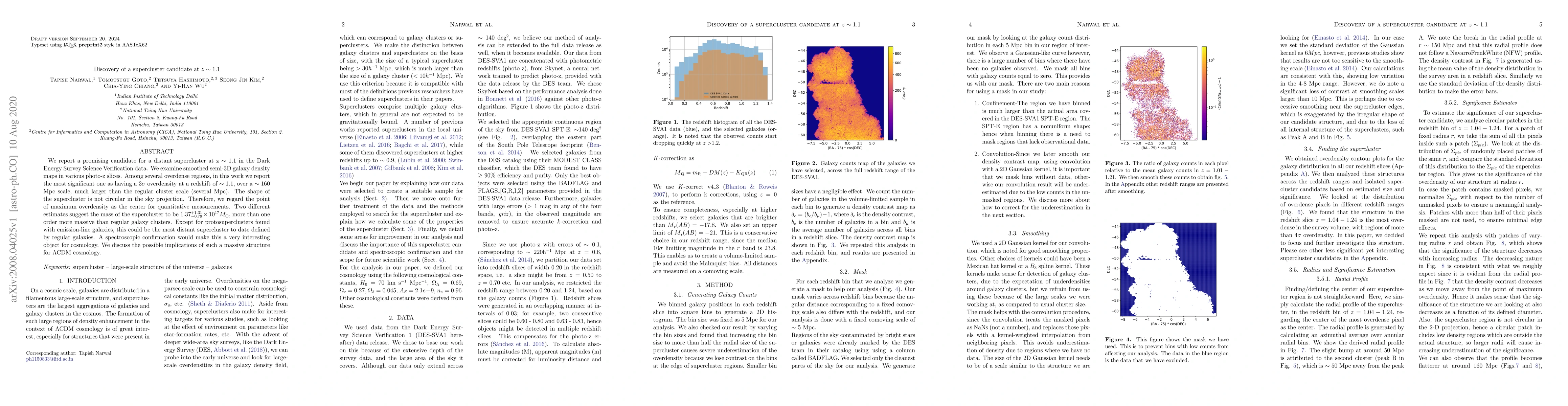 This paper reports a significant candidate for a distant supercluster at $z \sim 1.1$ in Dark Energy Survey data, showing a $3\sigma$ overdensity over a $\sim160$ Mpc scale, and suggesting a mass of $1.37\substack{+1.31 \\ -0.79} \times 10^{17} M_{\odot}$, more than one order of magnitude larger than typical clusters. The findings could have implications for $\Lambda$CDM cosmology if confirmed spectroscopically.