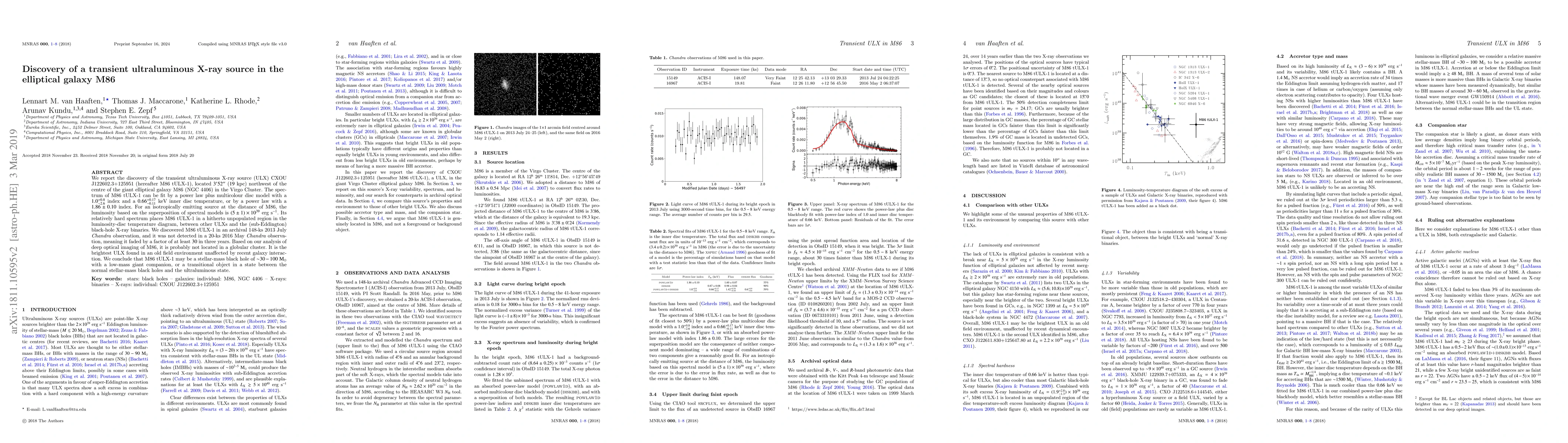 Researchers discovered a transient ultraluminous X-ray source in the elliptical galaxy M86, which has a luminosity 30 times that of normal stellar-mass black holes and may be a new type of object.