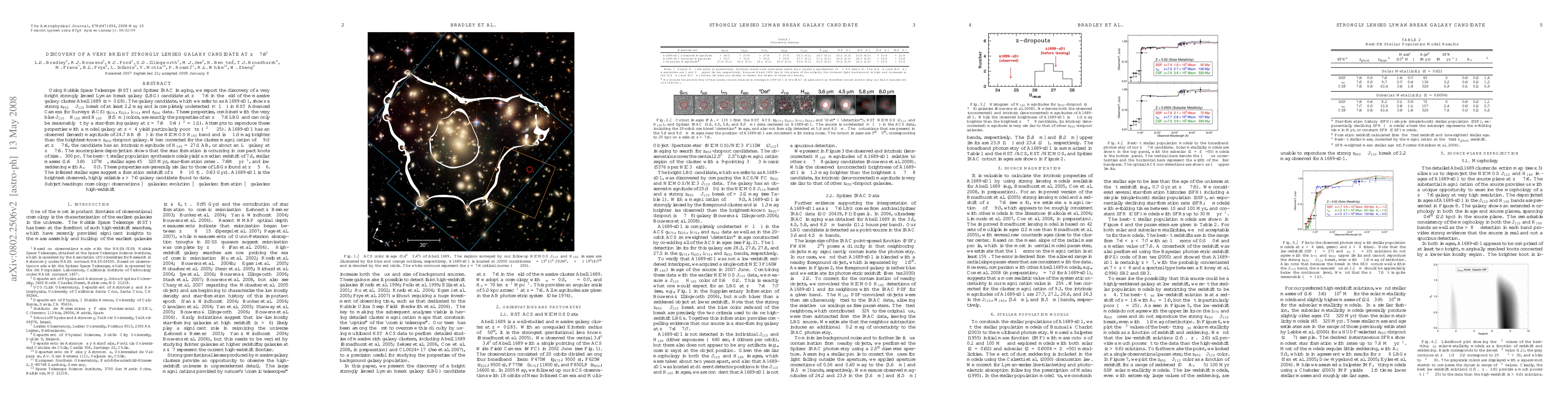Using HST and Spitzer IRAC imaging, we report the discovery of a very bright strongly lensed Lyman break galaxy (LBG) candidate at z~7.6 in the field of the massive galaxy cluster Abell 1689. The galaxy candidate, which we refer to as A1689-zD1, shows a strong z-J break of at least 2.2 mag and is completely undetected (<1 sigma) in HST/ACS g, r, i, and z-band data. These properties, combined with the very blue J-H and H-[4.5] colors, are exactly the properties of an z~7.6 LBG and can only be reasonably fit by a star-forming galaxy at z=7.6 +/- 0.4. Attempts to reproduce these properties with a model galaxy at z<4 yield particularly poor fits. A1689-zD1 has an observed (lensed) magnitude of 24.7 AB (8 sigma) in the NICMOS H band and is ~1.3 mag brighter than the brightest-known z-dropout galaxy. When corrected for the cluster magnification of 9.3 at z~7.6, the candidate has an intrinsic magnitude of H=27.1 AB, or about an L* galaxy at z~7.6. The source-plane deprojection shows that the star formation is occurring in compact knots of size ~<300 pc. The best-fit stellar population synthesis models yield a median redshift of 7.6, stellar masses (1.6-3.9) x 10^9 M_sun, stellar ages 45-320 Myr, star-formation rates ~<7.6 M_sun/yr, and low reddening with A_V <= 0.3. These properties are generally similar to those of LBGs found at z~5-6. The inferred stellar ages suggest a formation redshift of z~8-10 (t~<0.63 Gyr). A1689-zD1 is the brightest observed, highly reliable z>7.0 galaxy candidate found to date.