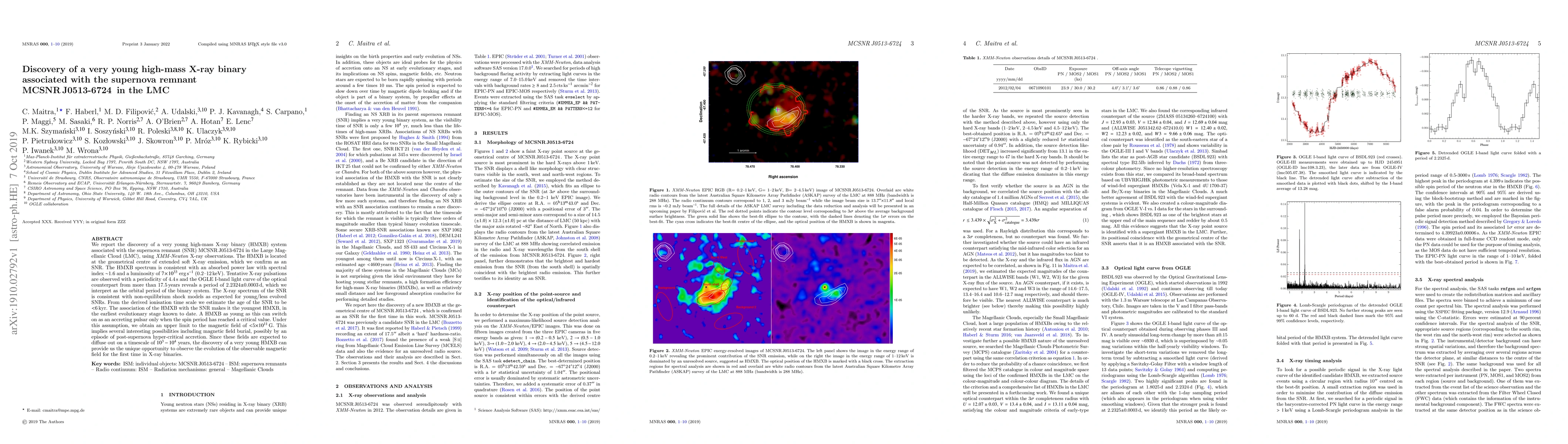 We report the discovery of a very young high-mass X-ray binary (HMXB) system associated with the supernova remnant (SNR) MCSNRJ0513-6724 in the Large Magellanic Cloud (LMC), using XMM-Newton X-ray observations. The HMXB is located at the geometrical centre of extended soft X-ray emission, which we confirm as an SNR. The HMXB spectrum is consistent with an absorbed power law with spectral index ~1.6 and a luminosity of 7x10^{33} ergs/s (0.2--12 keV). Tentative X-ray pulsations are observed with a periodicity of 4.4 s and the OGLE I-band light curve of the optical counterpart from more than 17.5 years reveals a period of 2.2324\pm0.0003 d, which we interpret as the orbital period of the binary system. The X-ray spectrum of the SNR is consistent with non-equilibrium shock models as expected for young/less evolved SNRs. From the derived ionisation time scale we estimate the age of the SNR to be <6 kyr. The association of the HMXB with the SNR makes it the youngest HMXB, in the earliest evolutionary stage known to date. A HMXB as young as this can switch on as an accreting pulsar only when the spin period has reached a critical value. Under this assumption, we obtain an upper limit to the magnetic field of < 5x10^{11} G. This implies several interesting possibilities including magnetic field burial, possibly by an episode of post-supernova hyper-critical accretion. Since these fields are expected to diffuse out on a timescale of 10^{3}-10^{4} years, the discovery of a very young HMXB can provide us the unique opportunity to observe the evolution of the observable magnetic field for the first time in X-ray binaries.