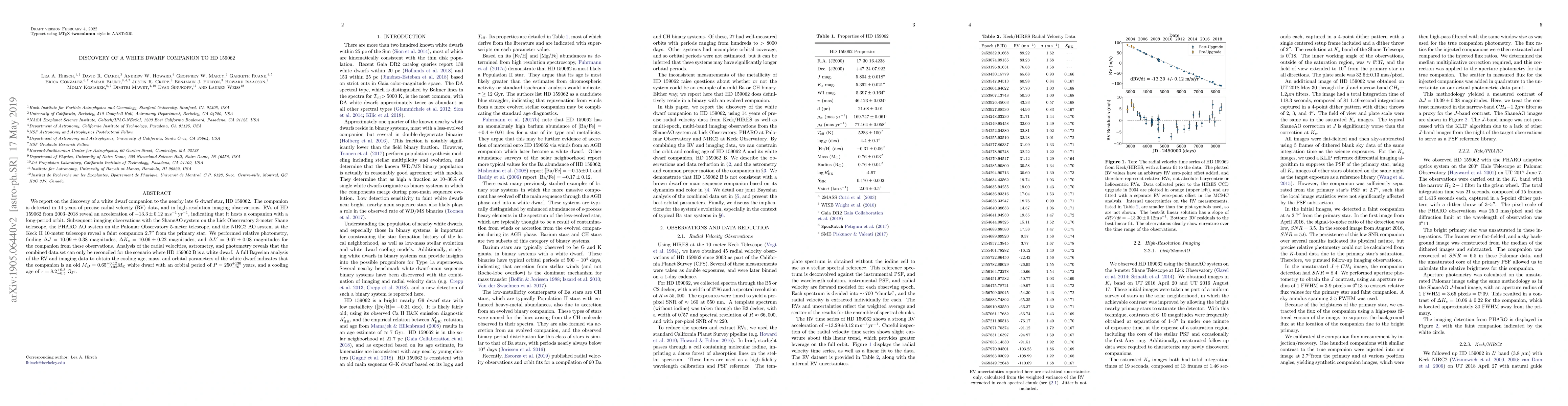 Researchers discovered a white dwarf companion to the nearby star HD 159062 using 14 years of radial velocity data and high-resolution imaging. The white dwarf, with a mass of $0.65^{+0.12}_{-0.04} M_{\odot}$, has a cooling age of $8.2^{+0.3}_{-0.5}$ Gyr and orbits the primary star with a period of $250^{+130}_{-76}$ years.