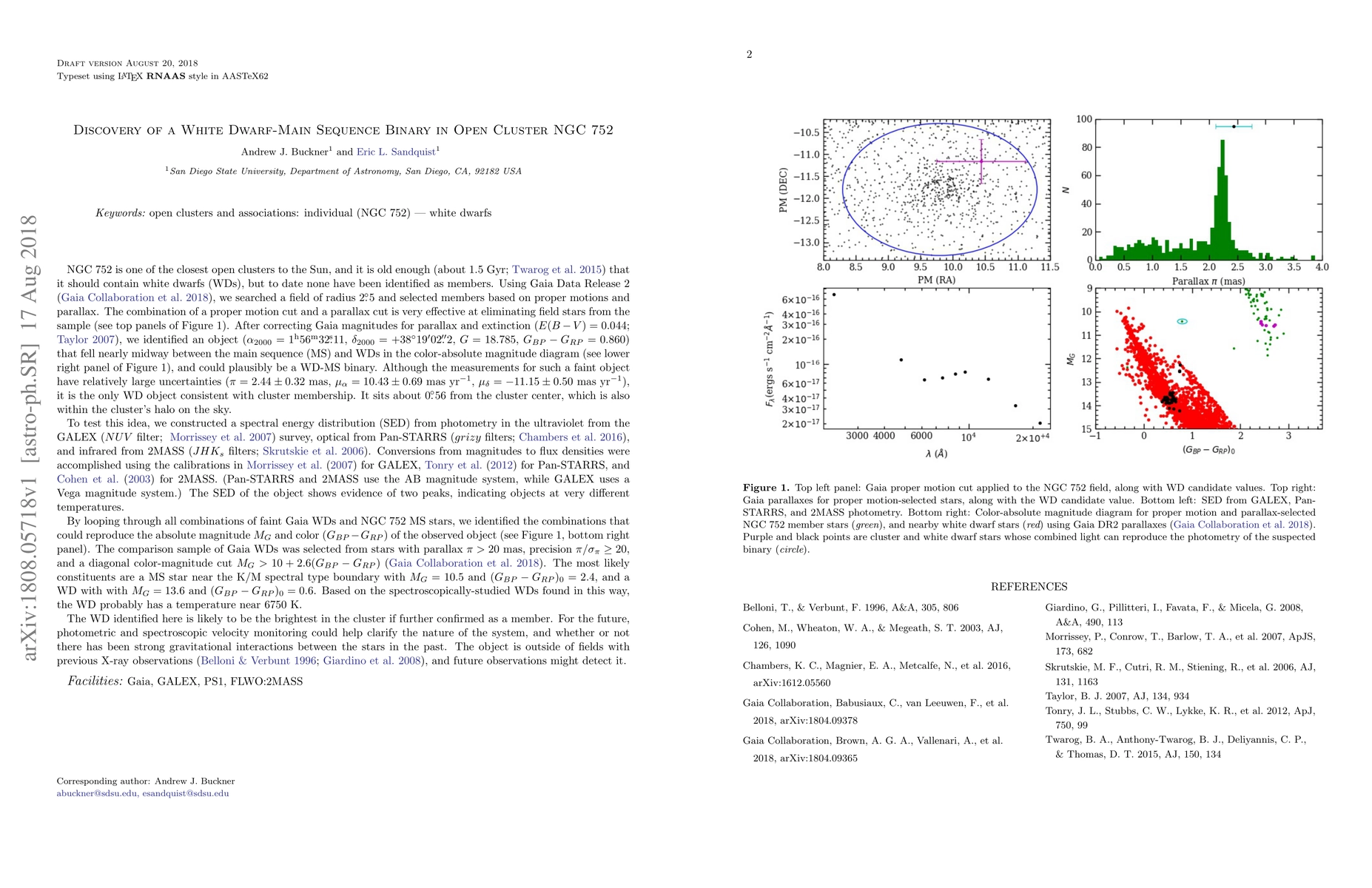 Researchers have discovered a likely white dwarf-main sequence binary in an open cluster, NGC 752, which would be the first known white dwarf in this nearby cluster if confirmed.