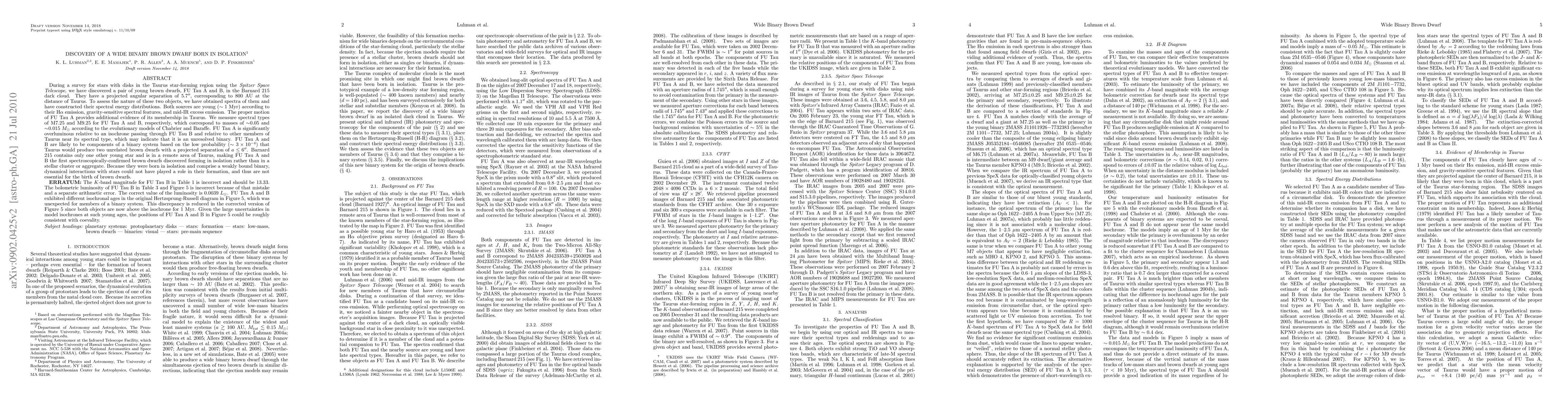 The paper reports the discovery of a wide binary system of young brown dwarfs, FU Tau A and B, in the Barnard 215 dark cloud of the Taurus star-forming region. These objects, likely formed in isolation, provide evidence that brown dwarfs can form without the influence of dynamical interactions with stars.