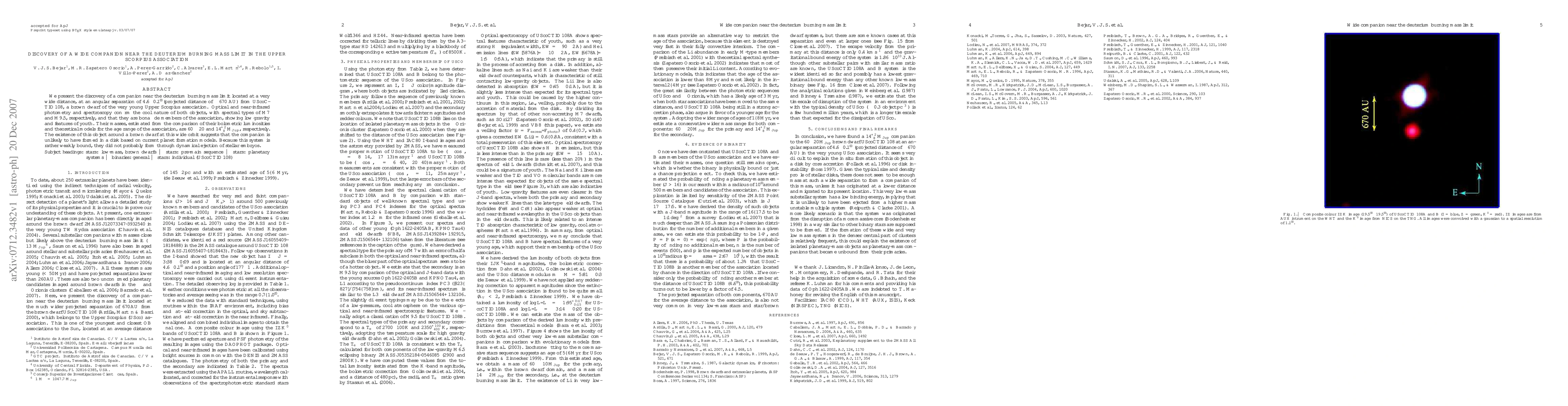 We present the discovery of a companion near the deuterium burning mass limit located at a very wide distance, at an angular separation of 4.6+/-0.1 arcsec (projected distance of ~ 670 AU) from UScoCTIO108, a brown dwarf of the very young Upper Scorpius association. Optical and near-infrared photometry and spectroscopy confirm the cool nature of both objects, with spectral types of M7 and M9.5, respectively, and that they are bona fide members of the association, showing low gravity and features of youth. Their masses, estimated from the comparison of their bolometric luminosities and theoretical models for the age range of the association, are 60+/-20 and 14^{+2}_{-8} MJup, respectively. The existence of this object around a brown dwarf at this wide orbit suggests that the companion is unlikely to have formed in a disk based on current planet formation models. Because this system is rather weakly bound, they did not probably form through dynamical ejection of stellar embryos.