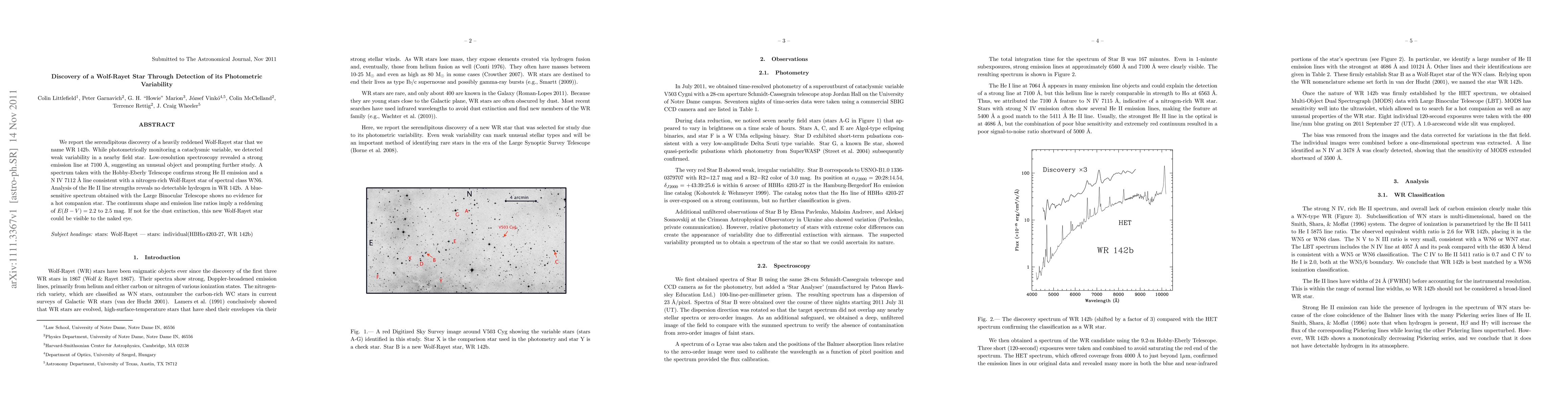 This paper reports the discovery of a heavily reddened Wolf-Rayet star, WR142b, found through its photometric variability during a monitoring of a cataclysmic variable. Spectroscopic analysis confirms its classification as a nitrogen-rich WN6 Wolf-Rayet star with no detectable hydrogen and significant dust extinction.