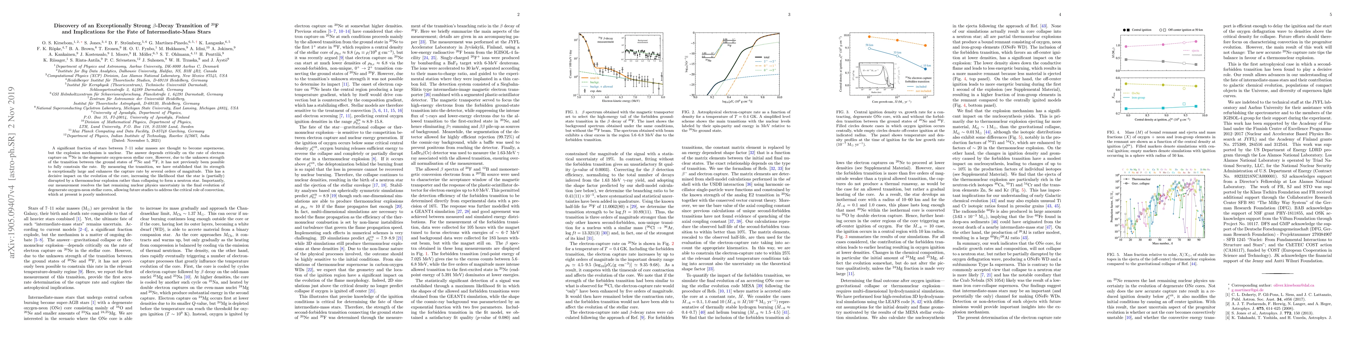 This paper reports the discovery of an exceptionally strong β-decay transition in $^{20}$F, which significantly enhances the electron capture rate on $^{20}$Ne. This finding increases the likelihood of intermediate-mass stars undergoing thermonuclear explosions instead of collapsing to neutron stars, resolving a key nuclear physics uncertainty in stellar evolution.