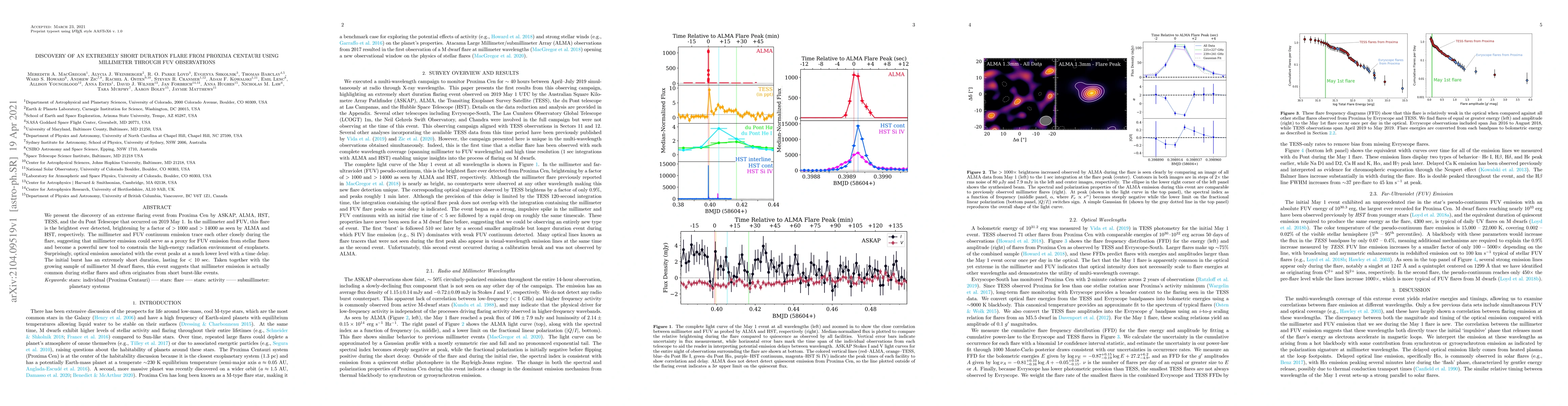 Scientists discovered an extremely short-duration flare on Proxima Centauri, lasting <10 seconds, and found that millimeter emission can serve as a proxy for high-energy radiation environment of exoplanets.