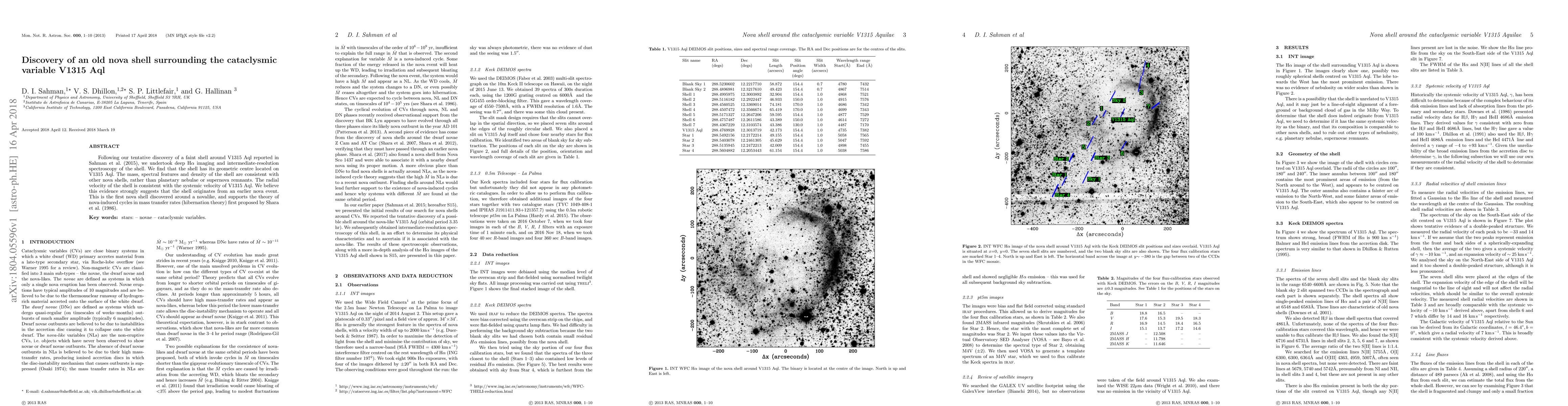 This paper reports the discovery of a nova shell surrounding the cataclysmic variable V1315 Aql, confirmed through deep Halpha imaging and spectroscopy. The shell's characteristics align with those of other nova remnants, suggesting it originates from an earlier nova event, supporting the hibernation theory of nova-induced mass transfer cycles.